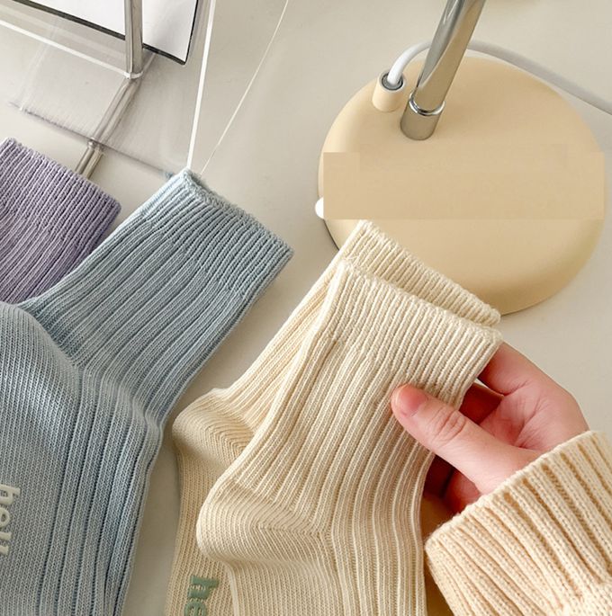 韓風馬卡龍色系坑條中筒棉襪 (均碼 (腳長22cm+))-3 雙一組
