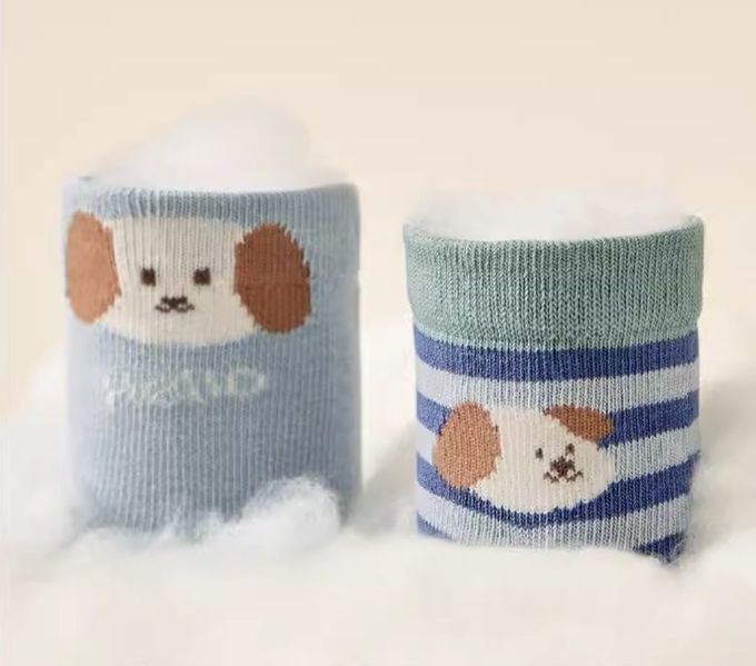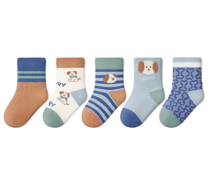 小狗骨頭條紋純棉短筒襪-5 雙一組