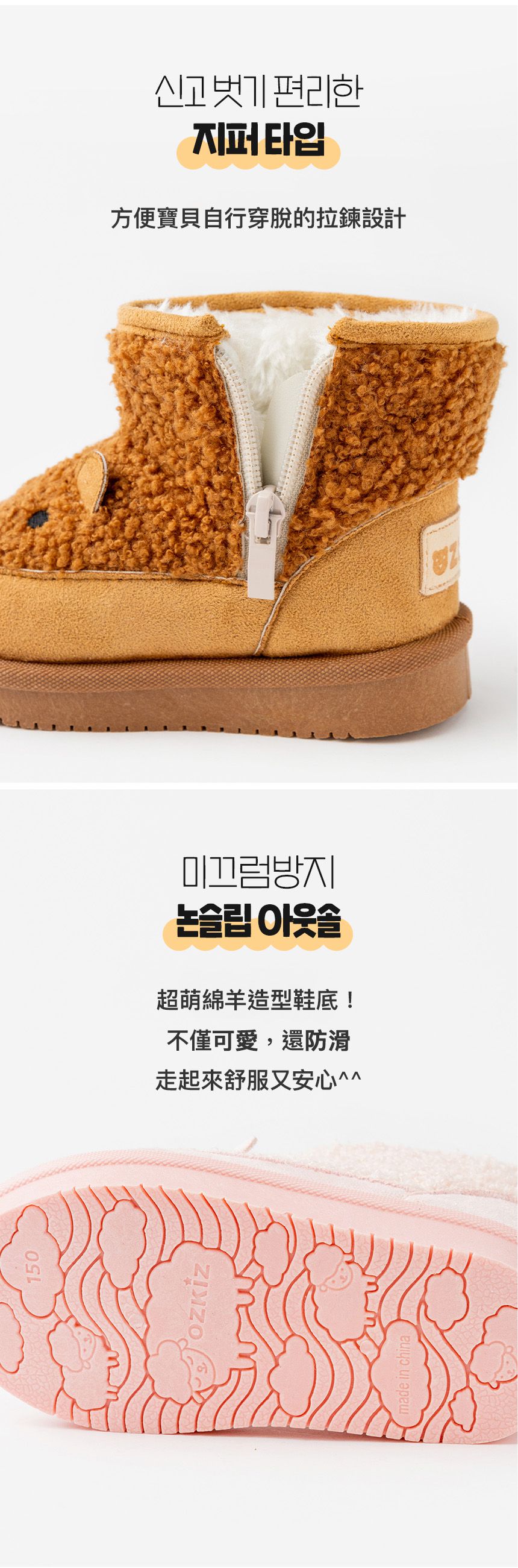 韓國 OZKIZ - 可愛熊熊刷毛側拉鍊雪靴-焦糖咖
