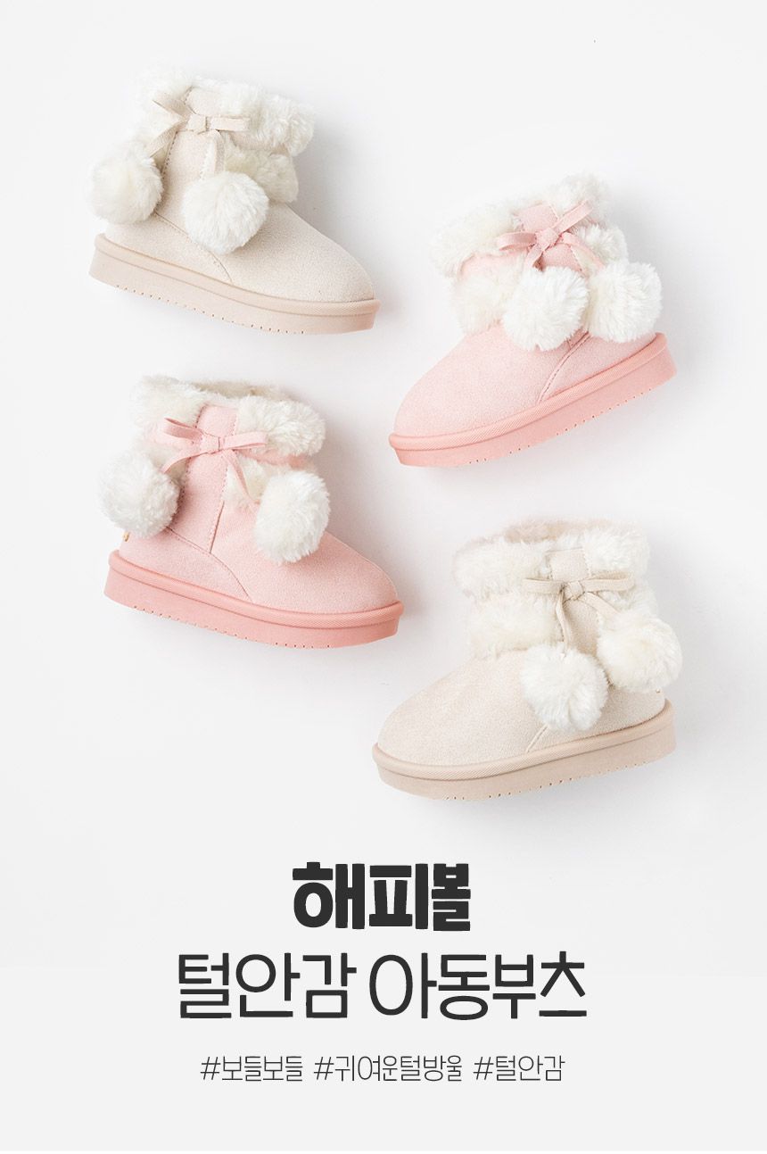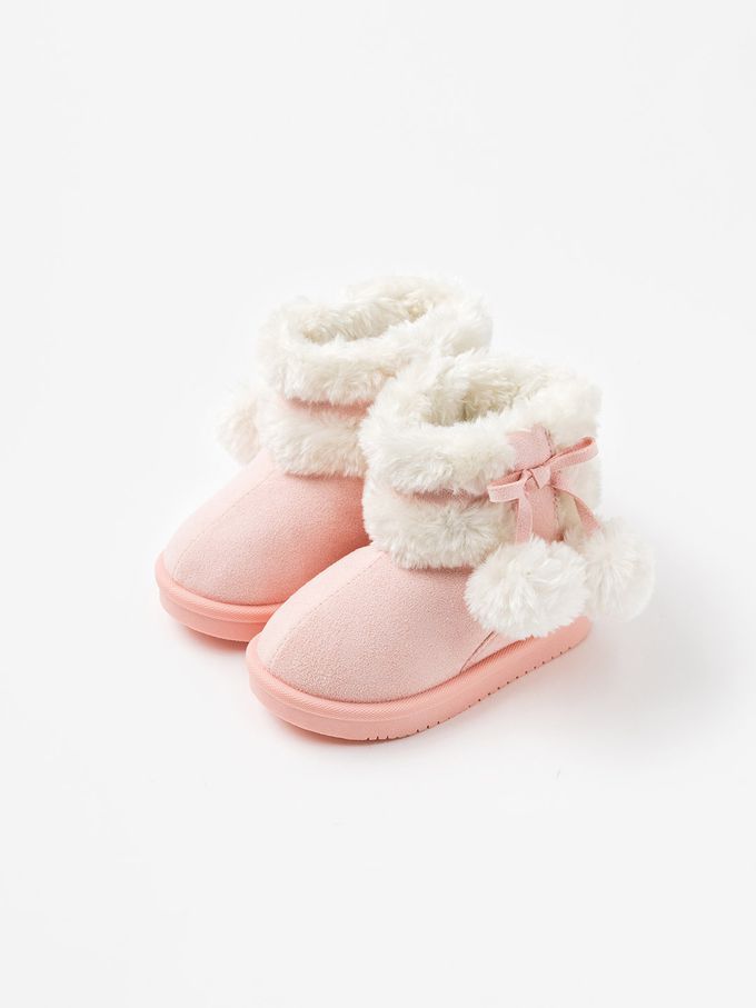 韓國 OZKIZ - 絨毛裝飾垂墜雪球雪靴-淺粉
