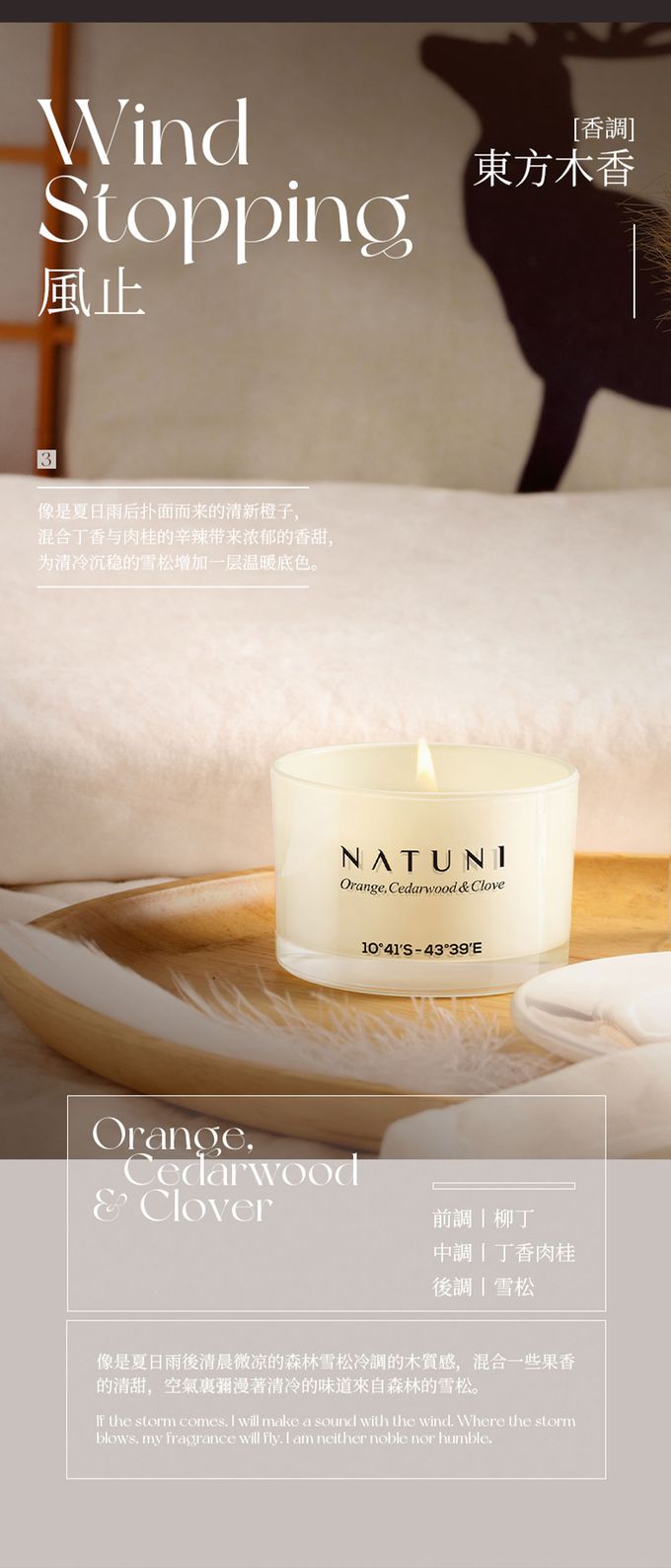 像是夏日雨後的清新,橙子的甜香、丁香與肉桂的混合,為心靈帶來了一份獨特的平靜。它是忙碌一天後的最佳放鬆方式。