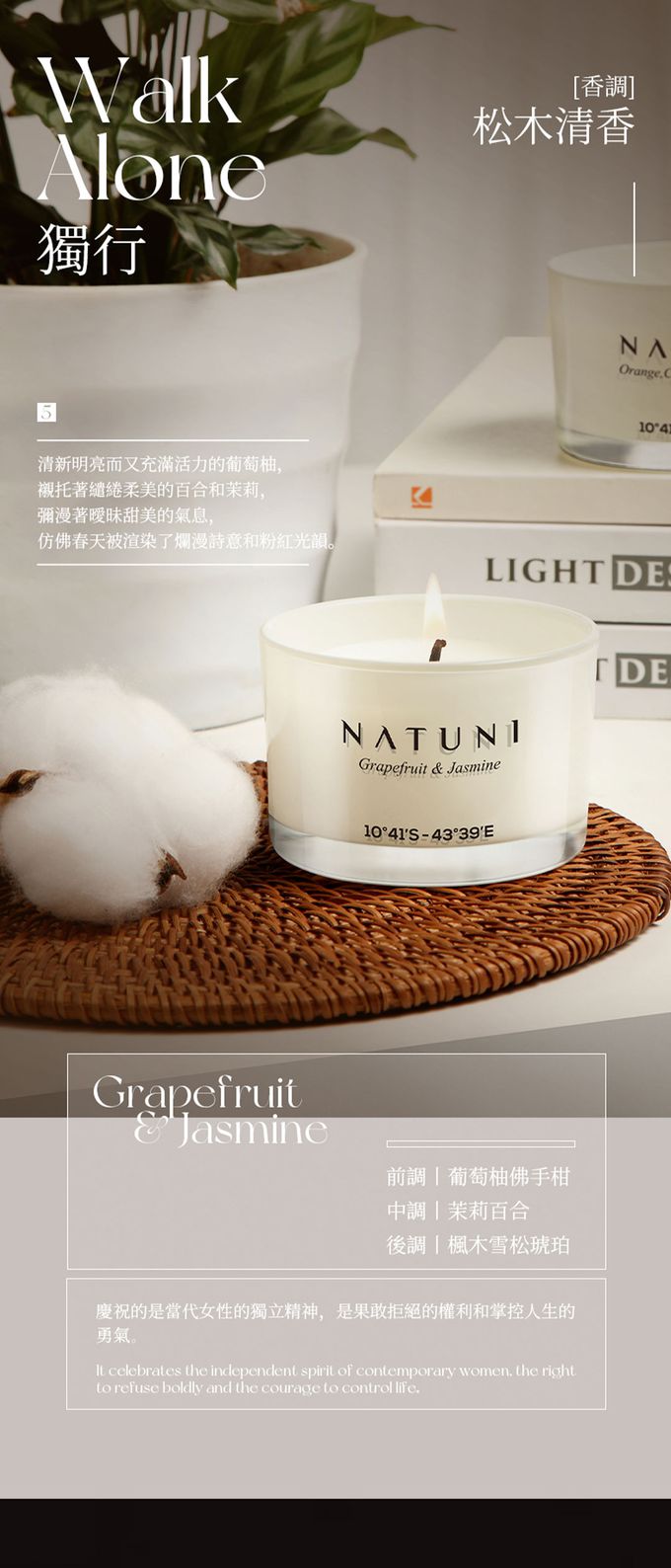 葡萄柚的清新與茉莉的溫柔,就像是春天的氣息。它不僅僅是一款香薰,更是獨立女性自信和果敢的象徵。