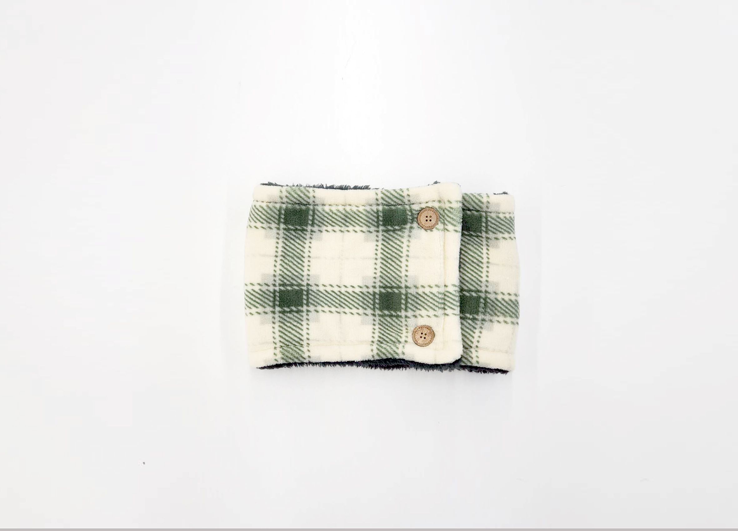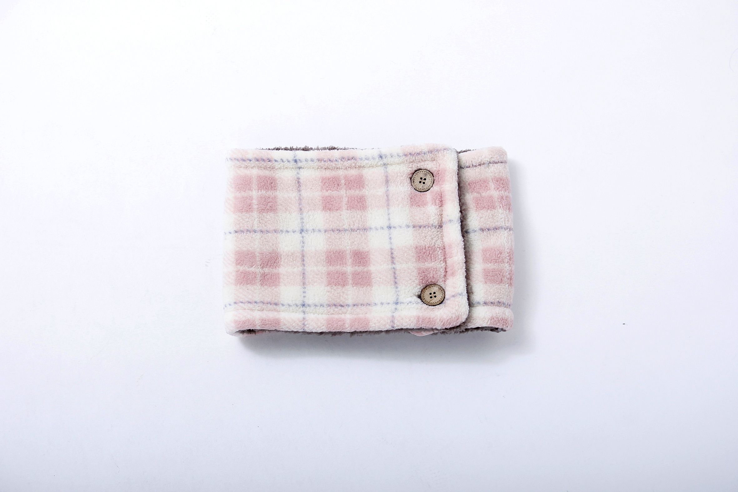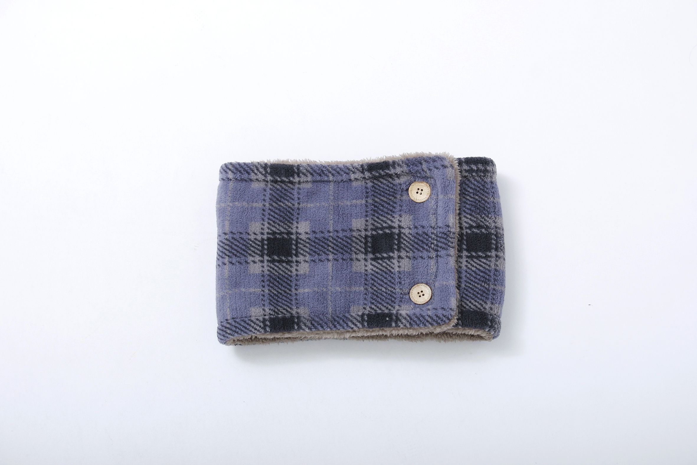 日本 Aube - 2WAY雙面毛絨保暖圍脖-格紋-淺灰 (18x28cm)