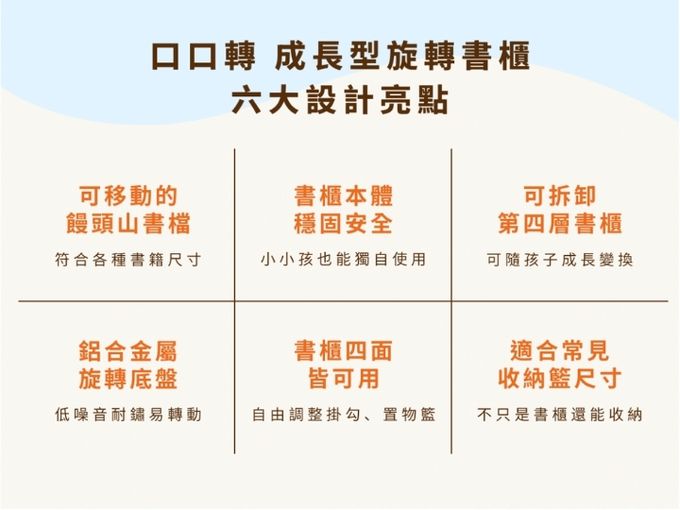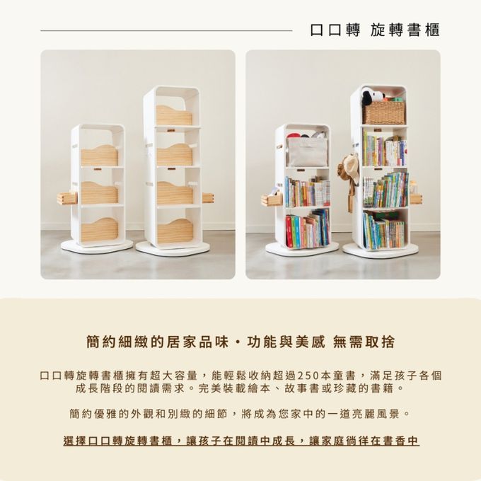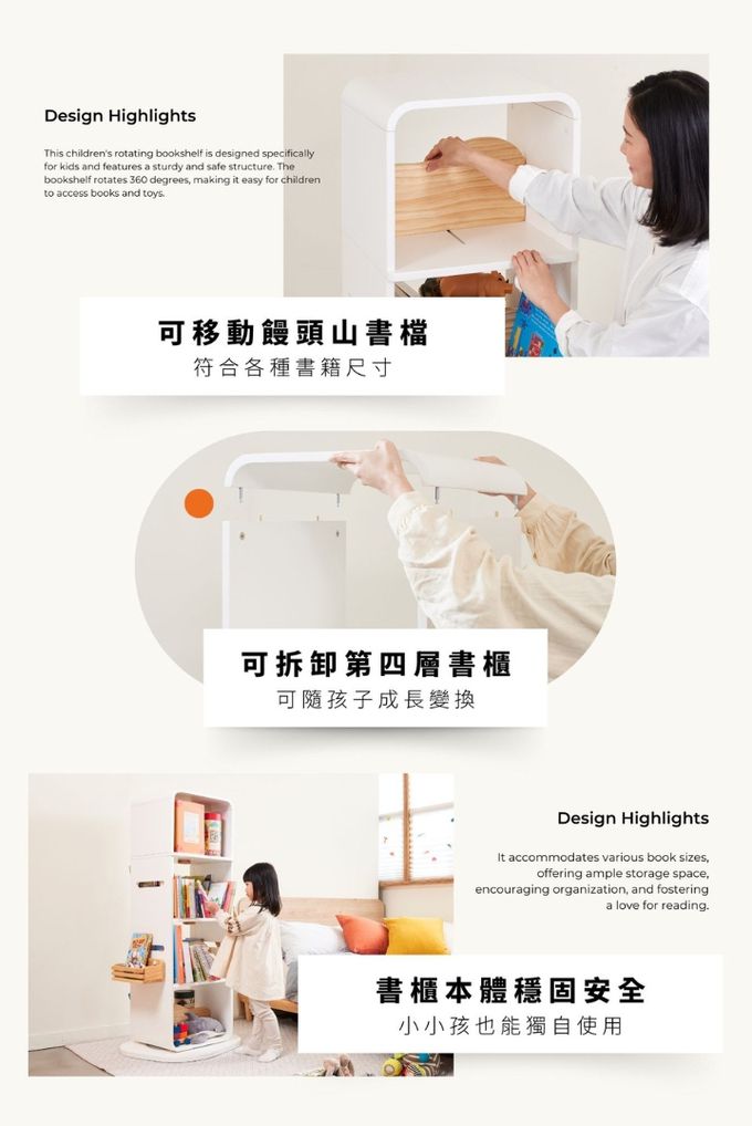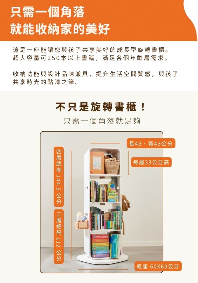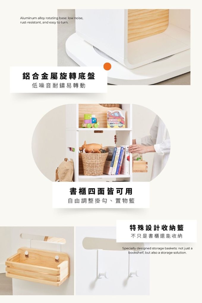 內含:‣ 旋轉書櫃 x1‣ 置物掛鉤 x2‣ 產品組裝說明書 x1