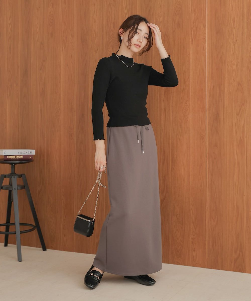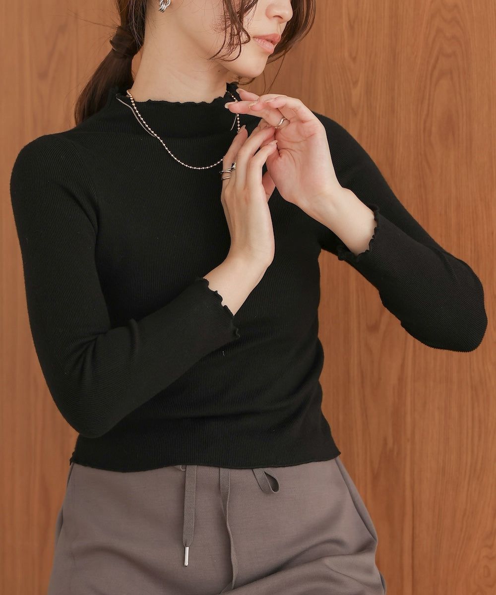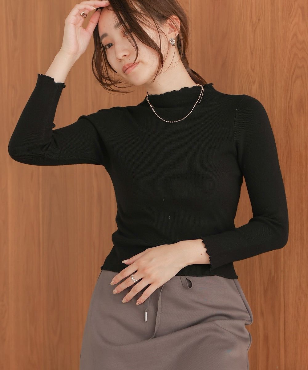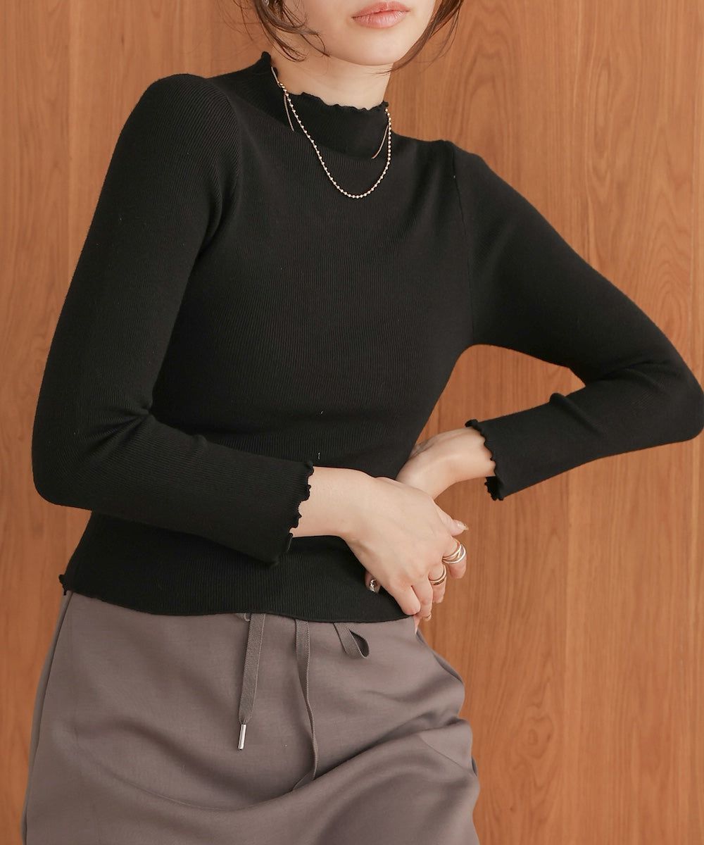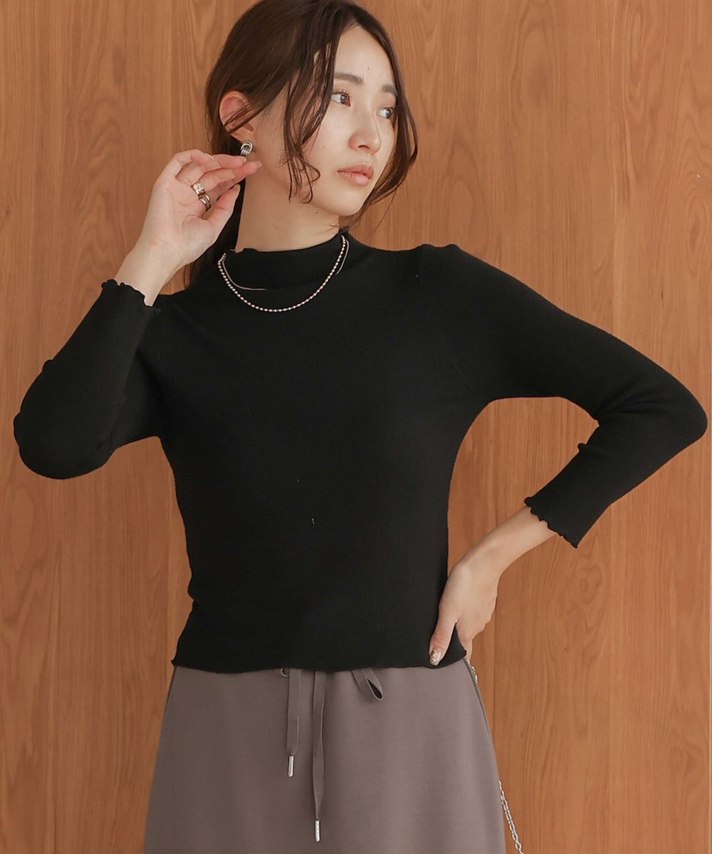 日本 Bab - 柔和木耳百搭高領針織上衣-黑