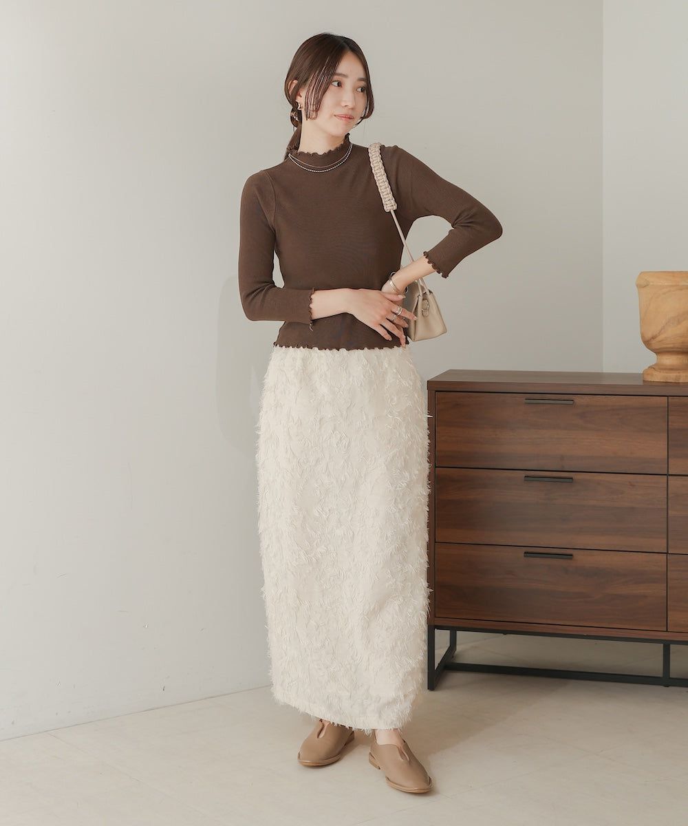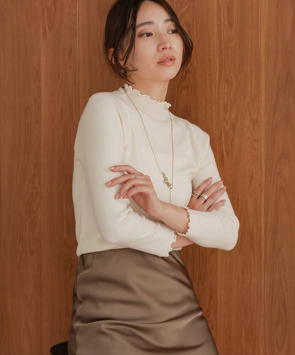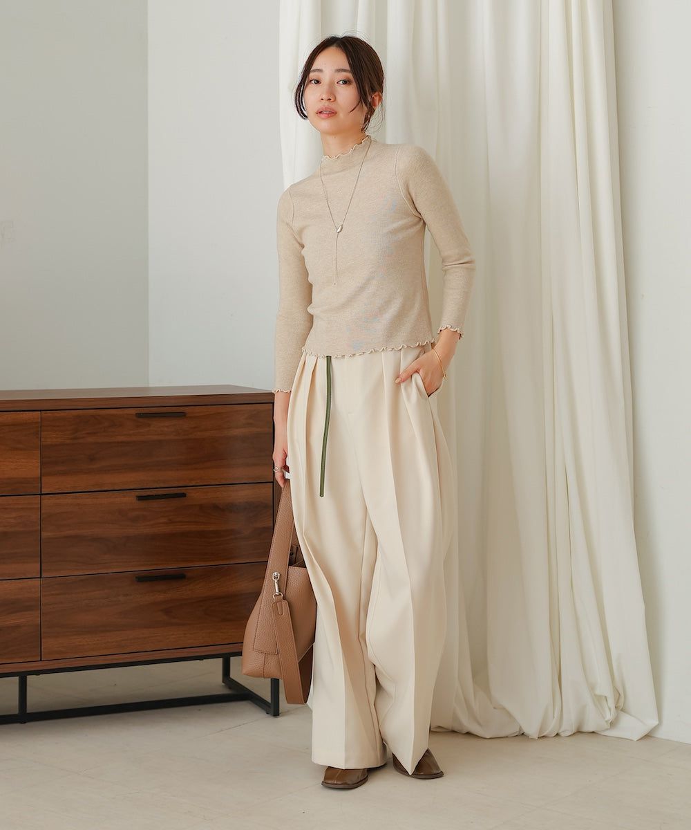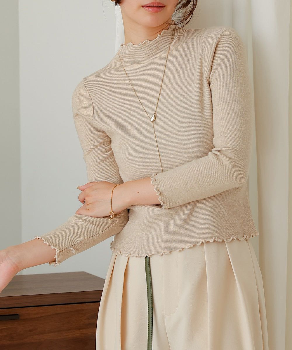 日本 Bab - 柔和木耳百搭高領針織上衣-膚