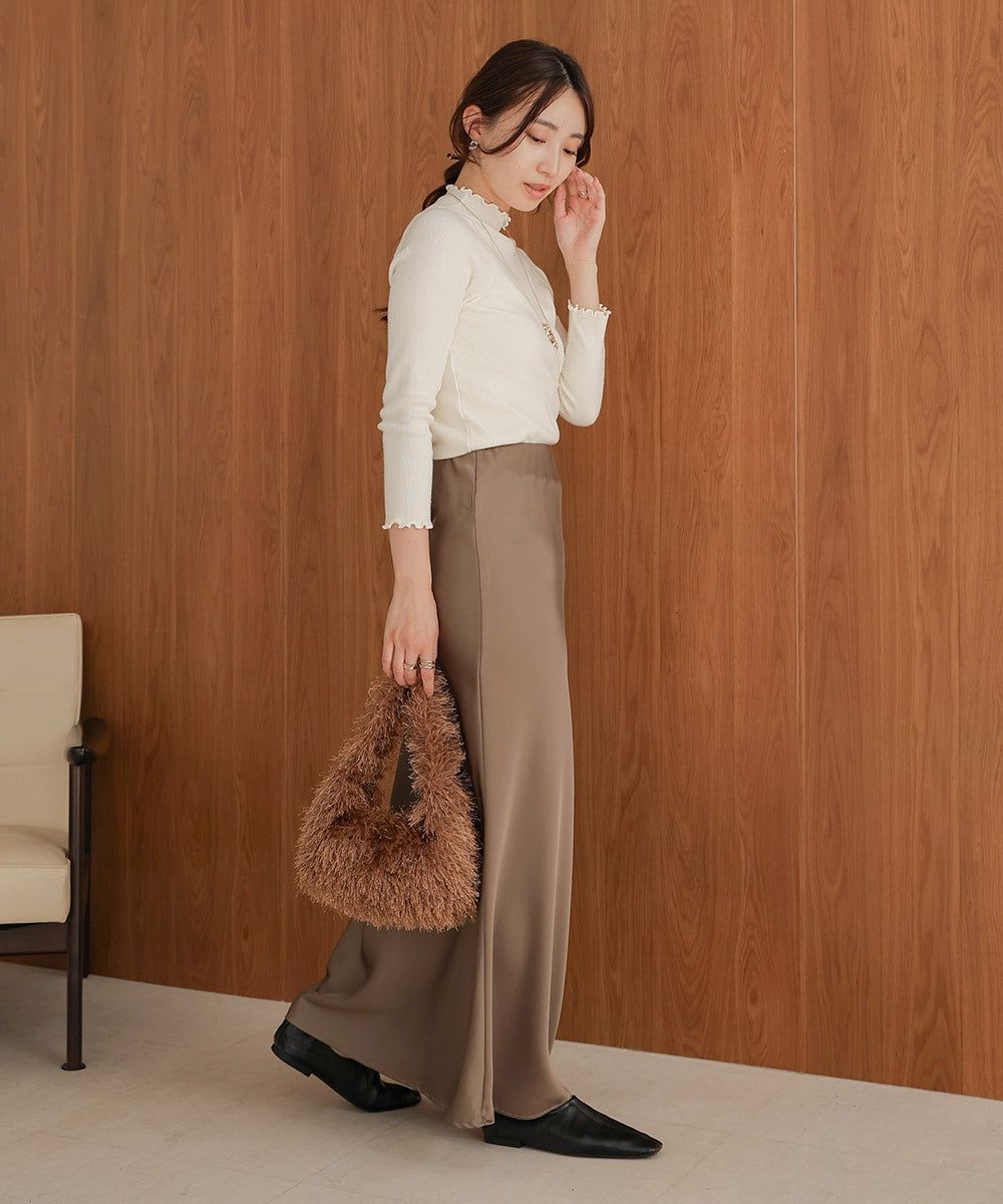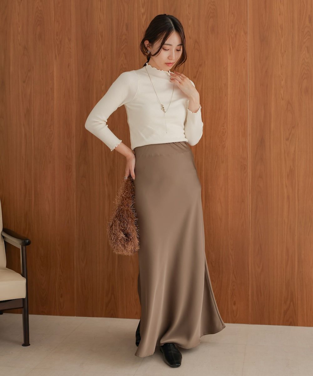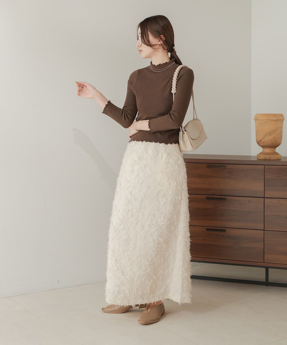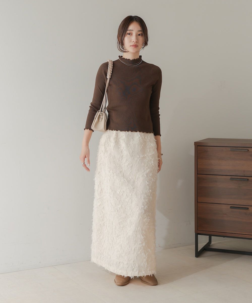 日本 Bab - 柔和木耳百搭高領針織上衣-膚