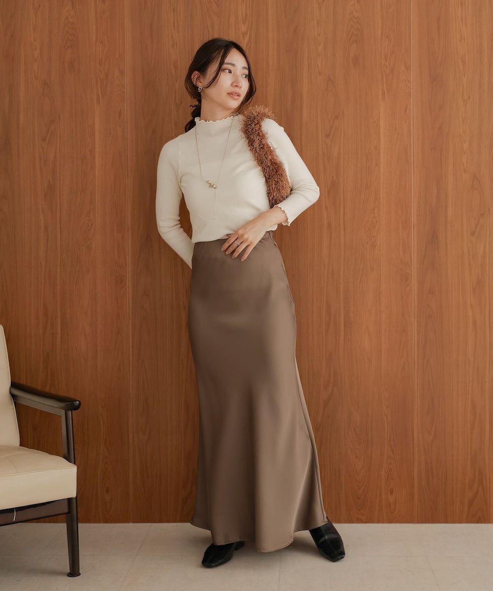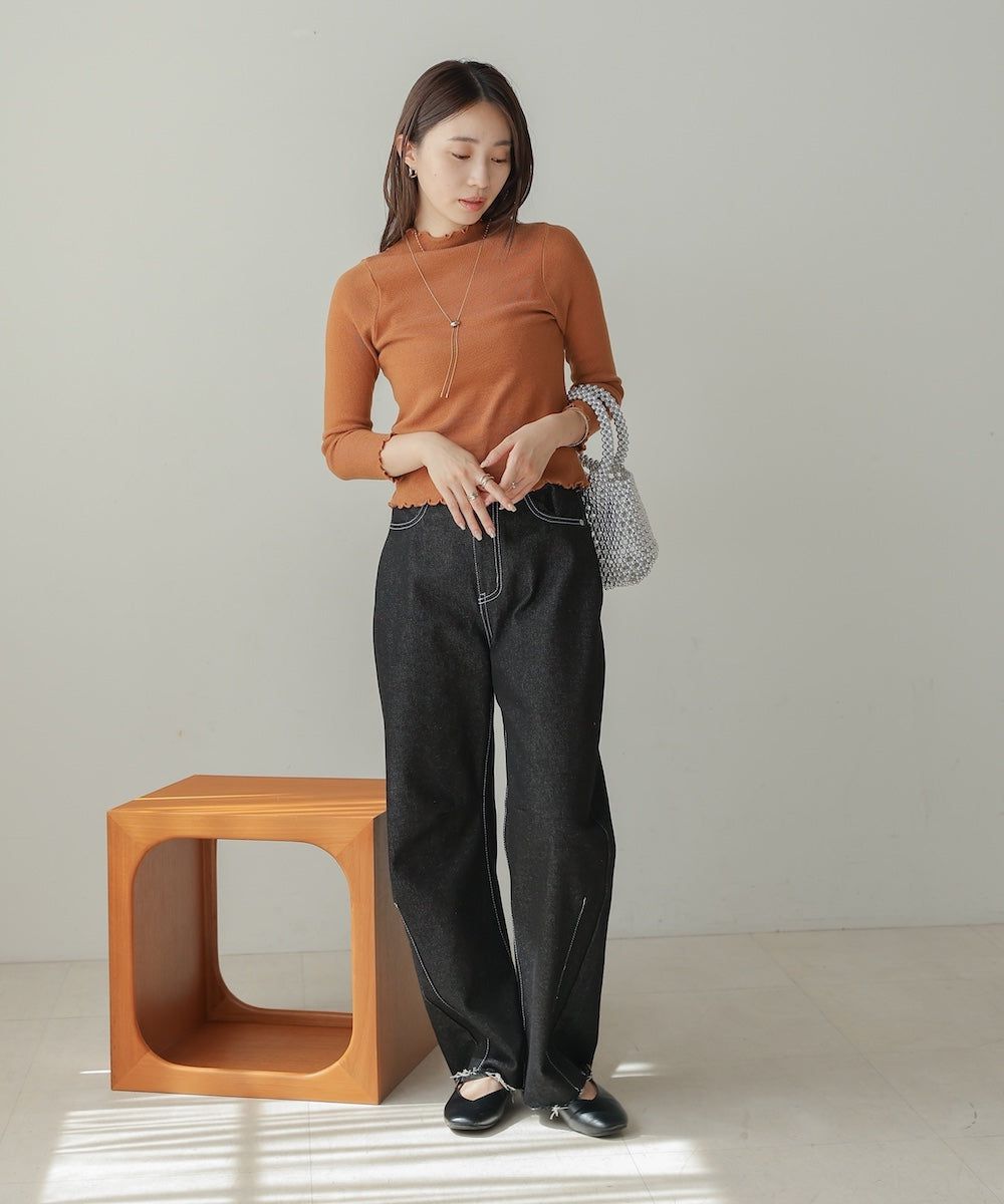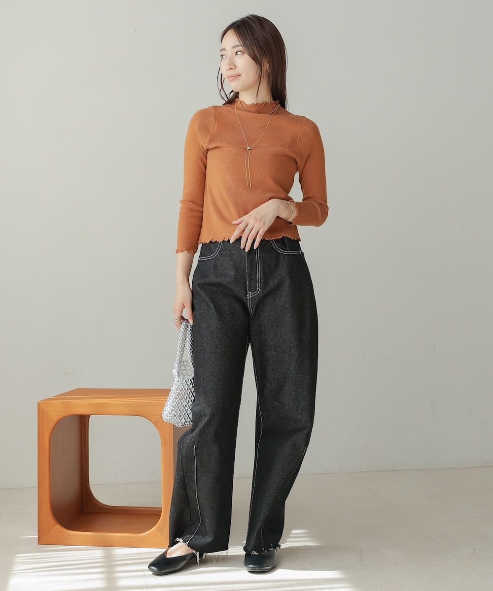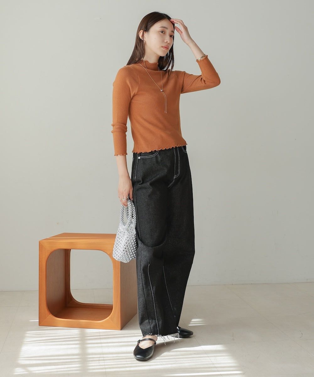 日本 Bab - 柔和木耳百搭高領針織上衣-膚