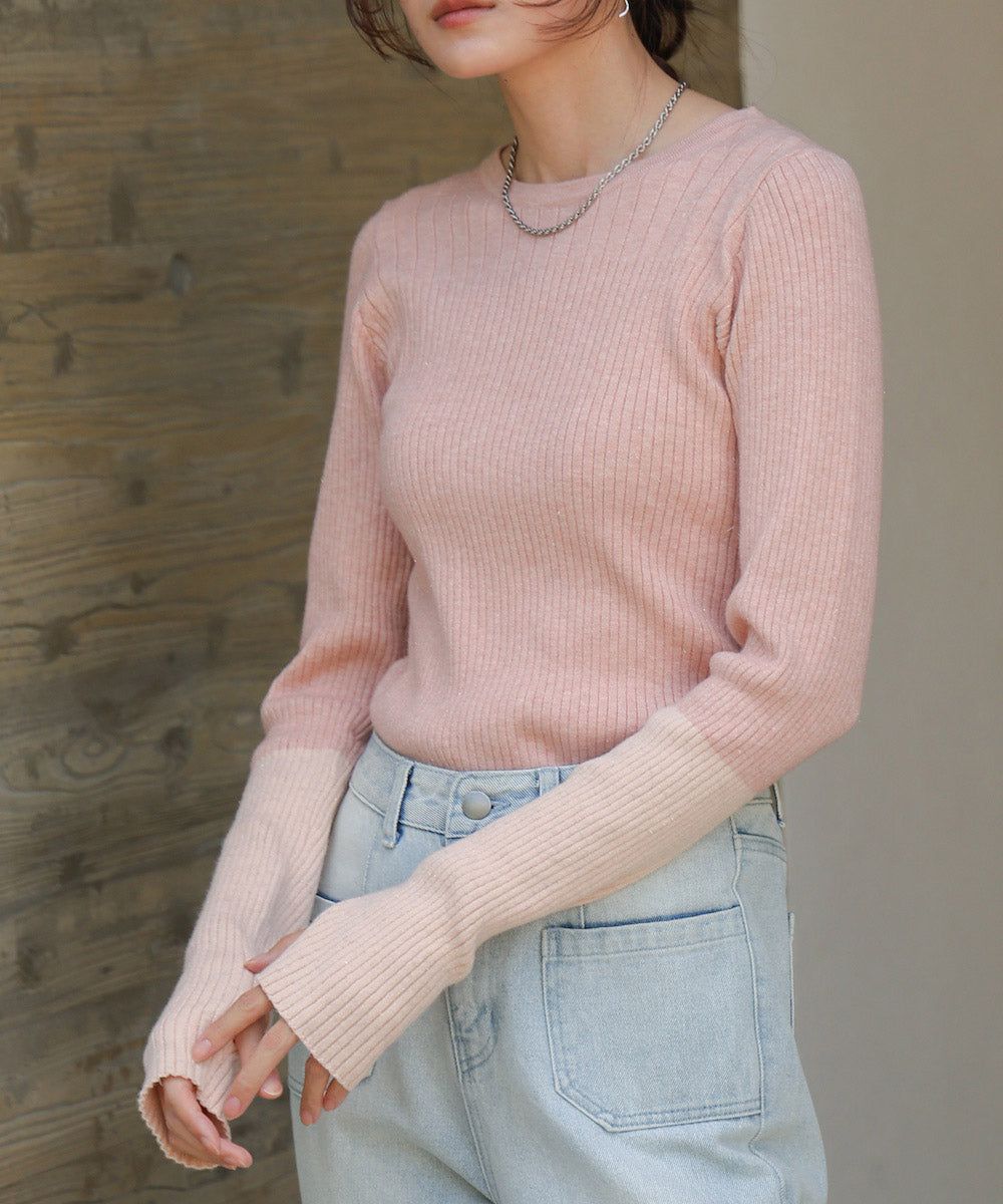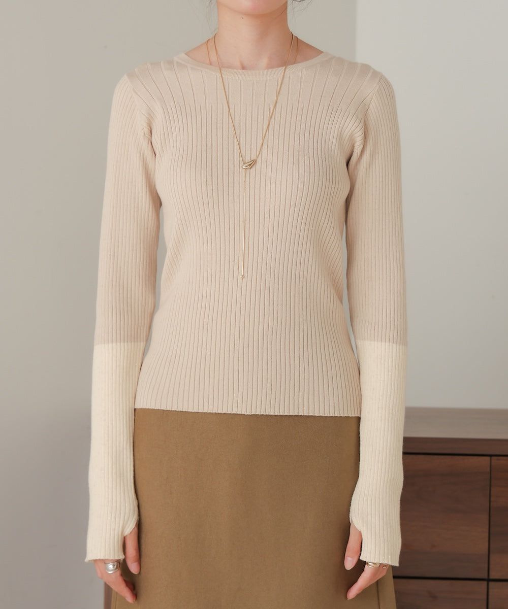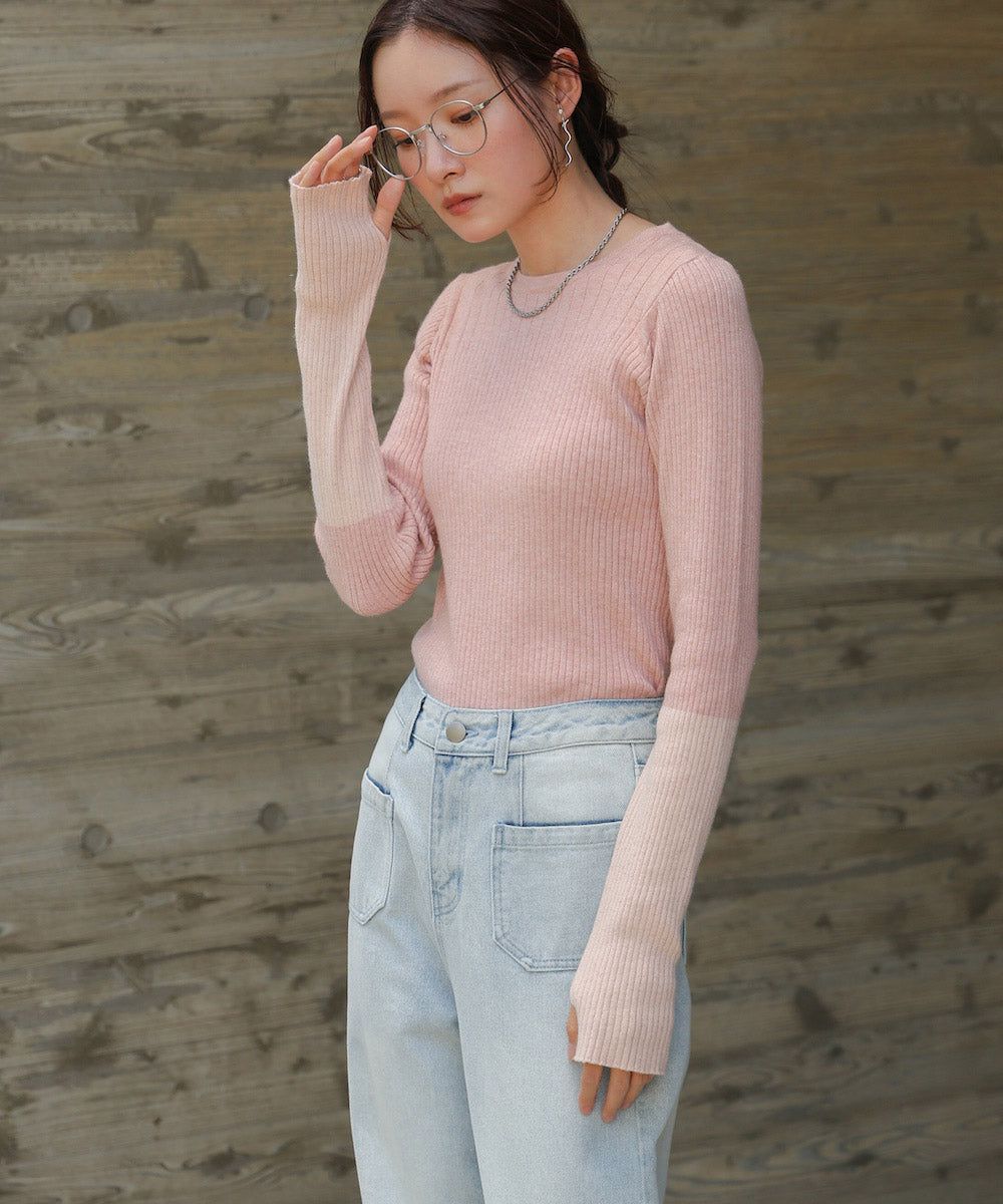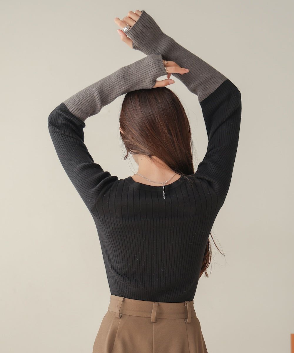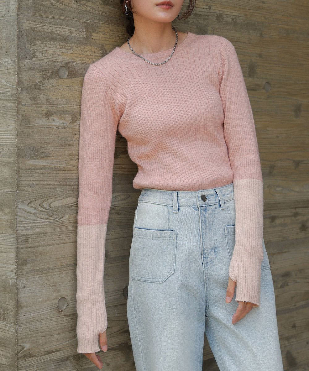 質感羅紋配色長袖上衣(指孔設計)