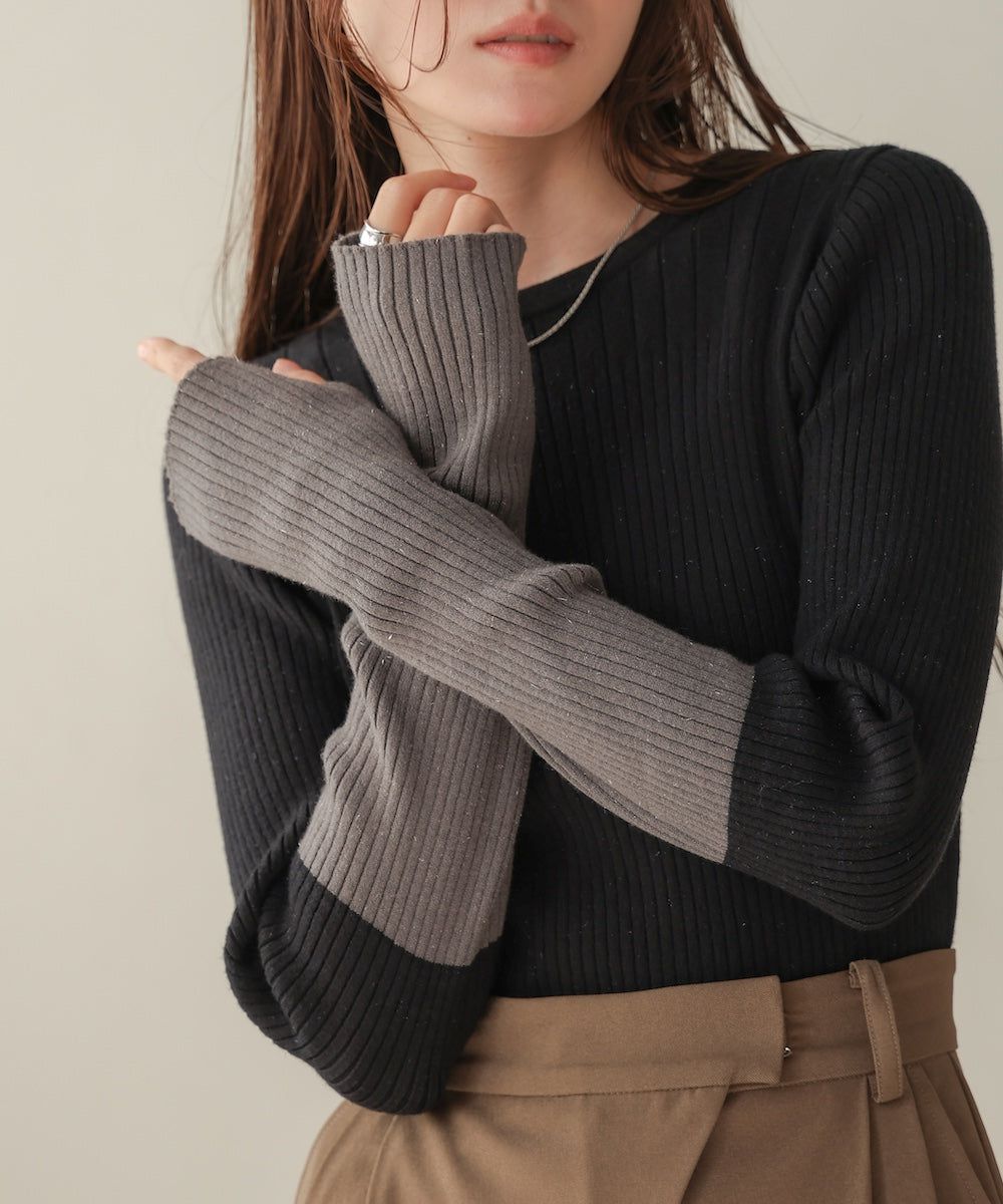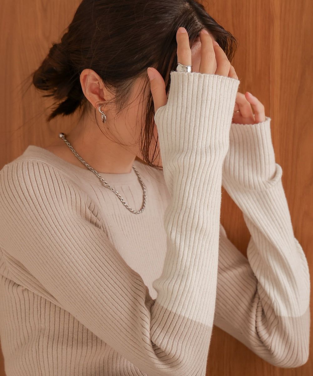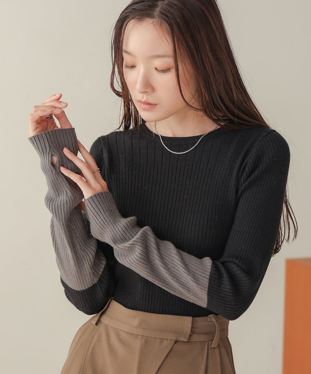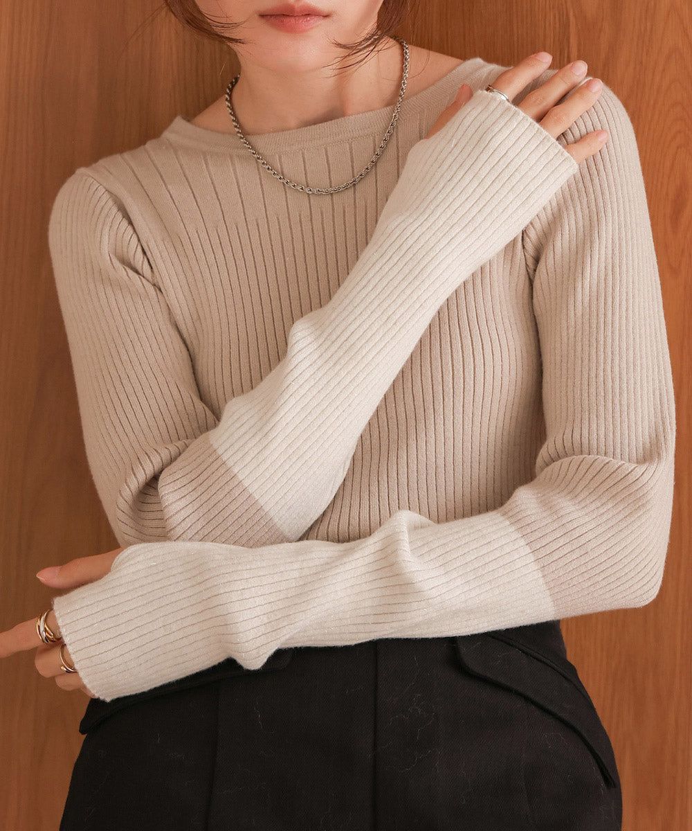 質感羅紋配色長袖上衣(指孔設計)