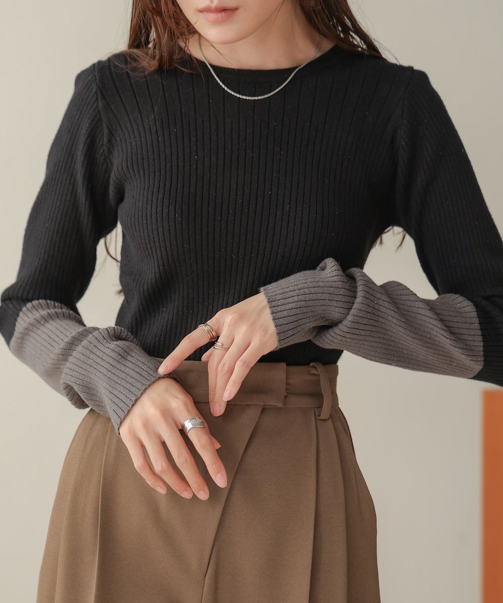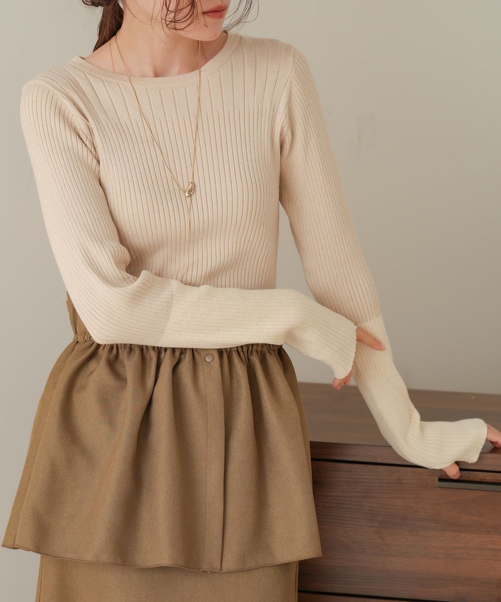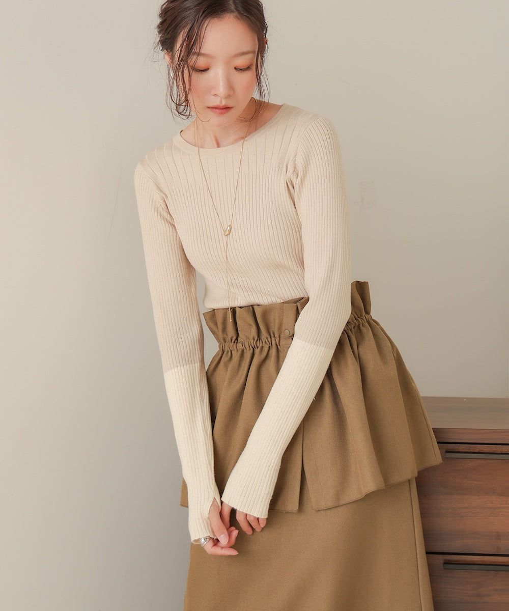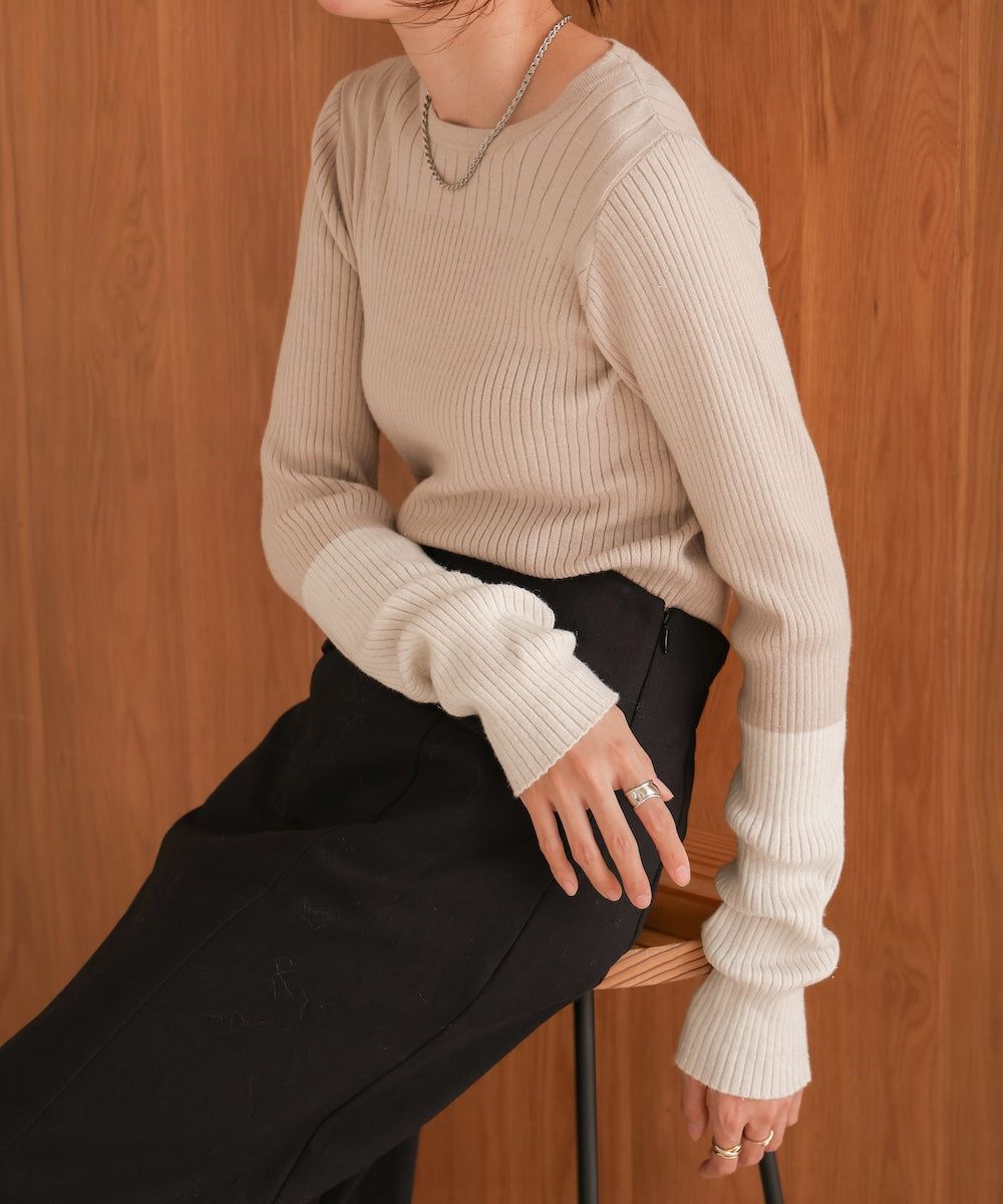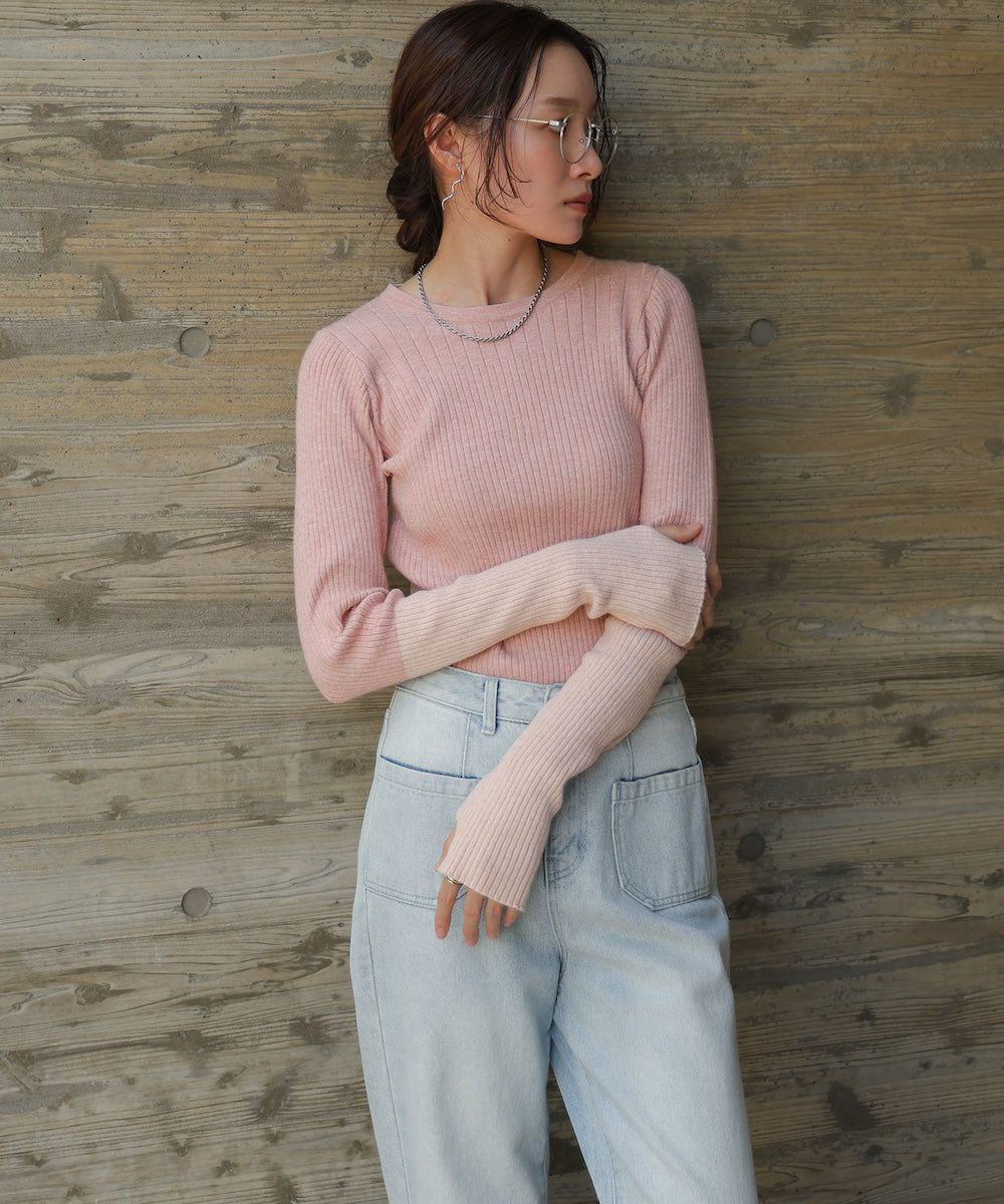 質感羅紋配色長袖上衣(指孔設計)