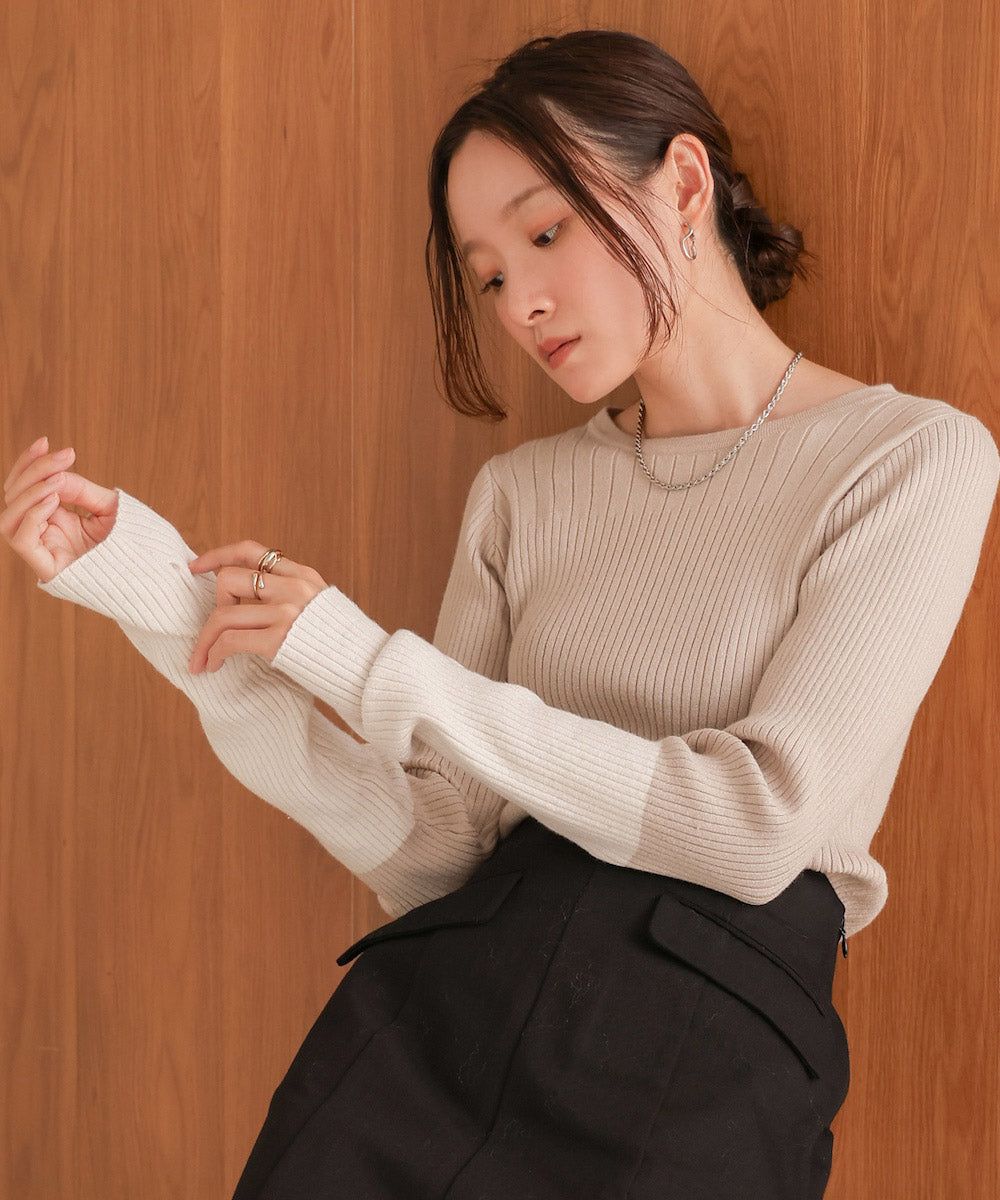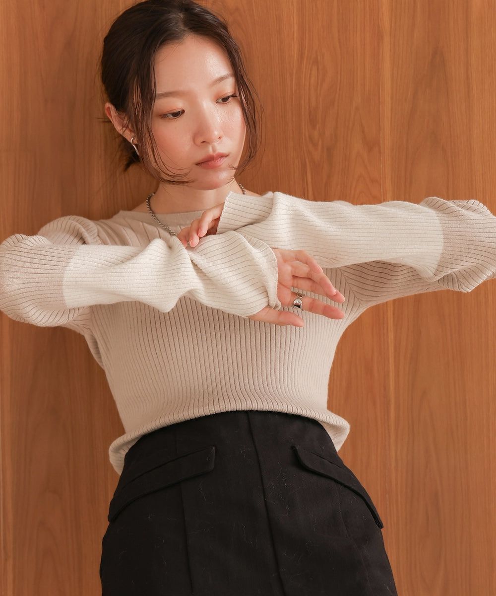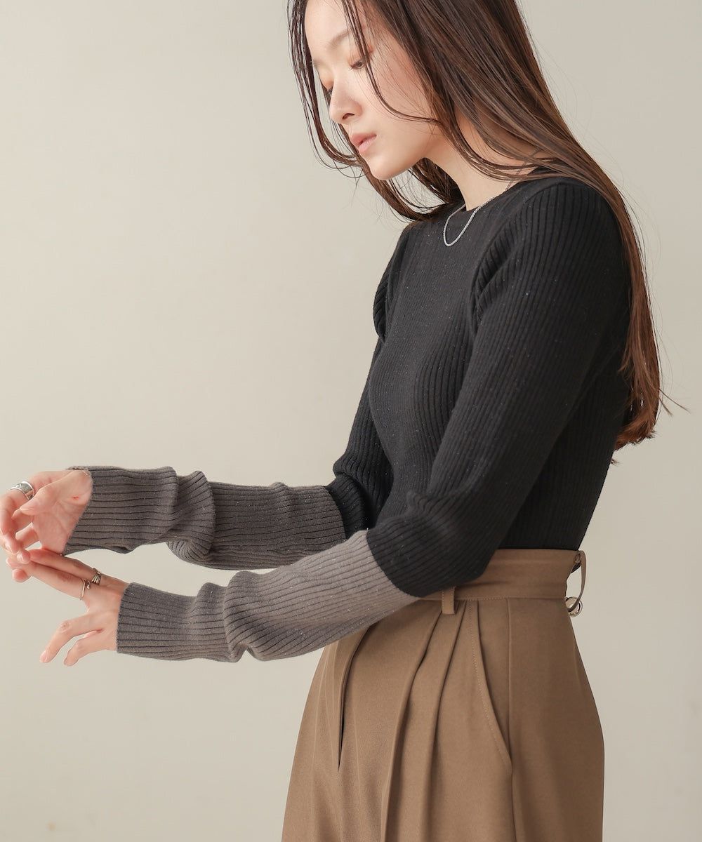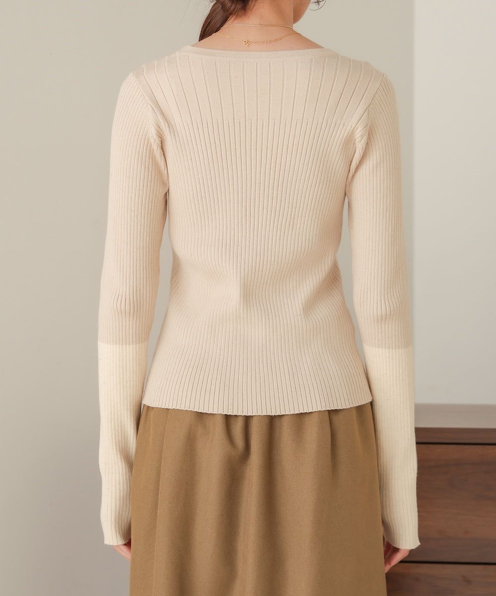 質感羅紋配色長袖上衣(指孔設計)