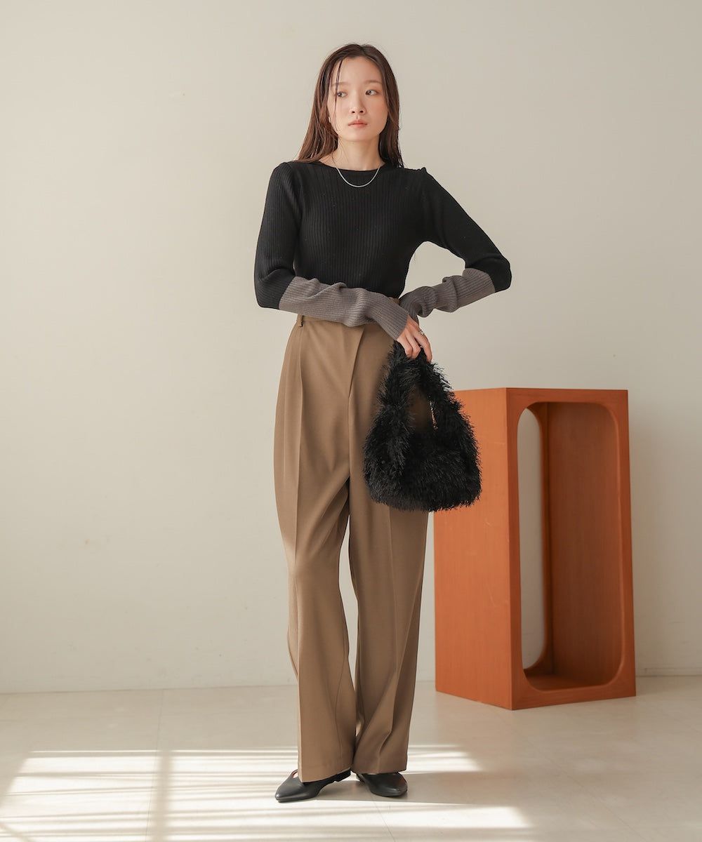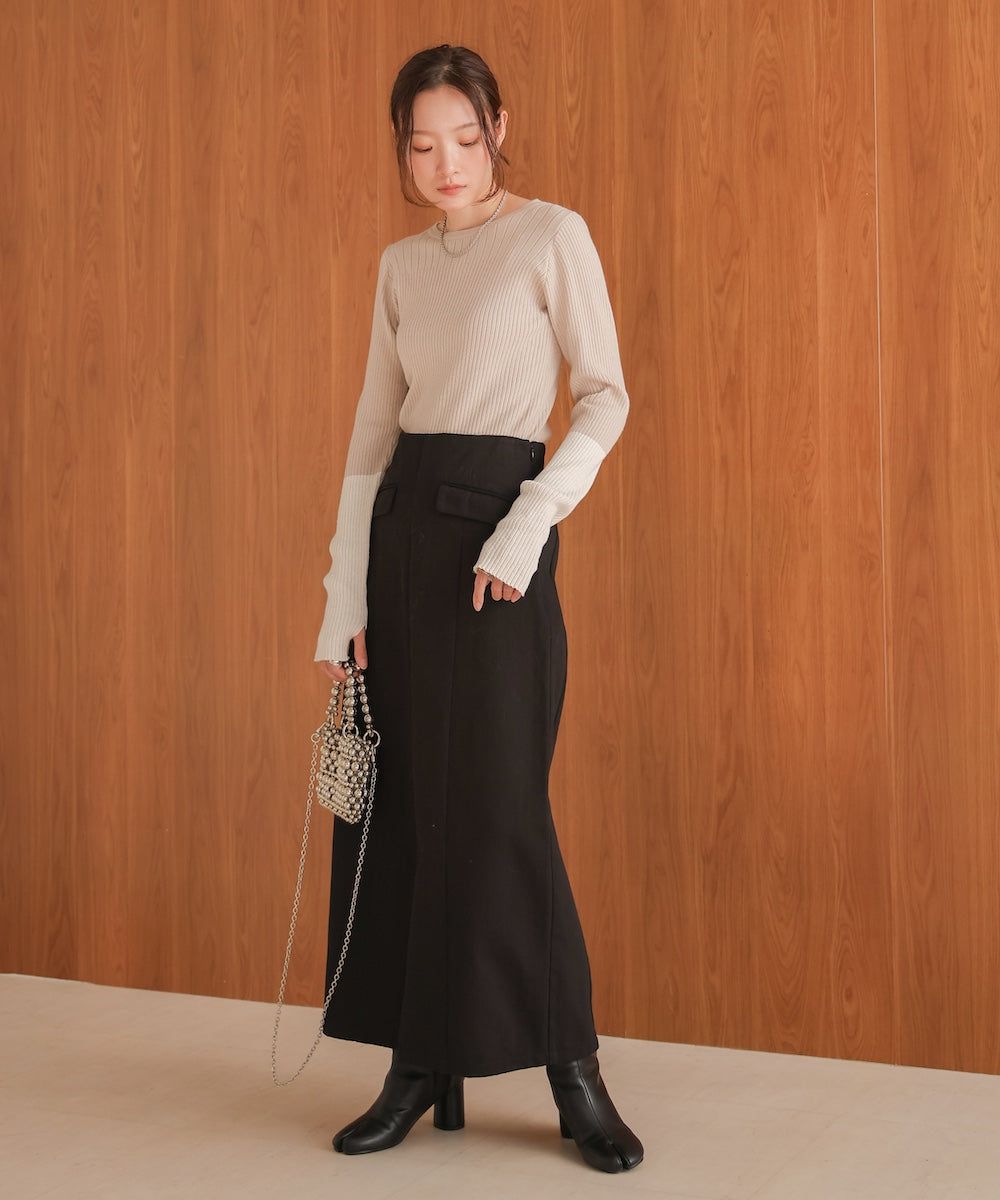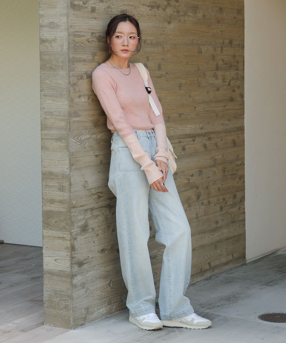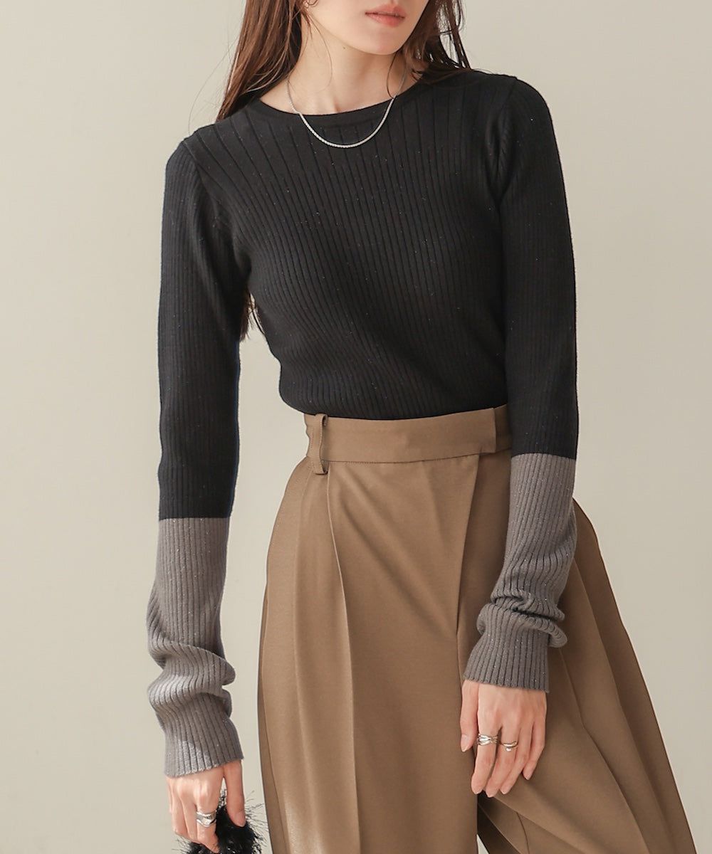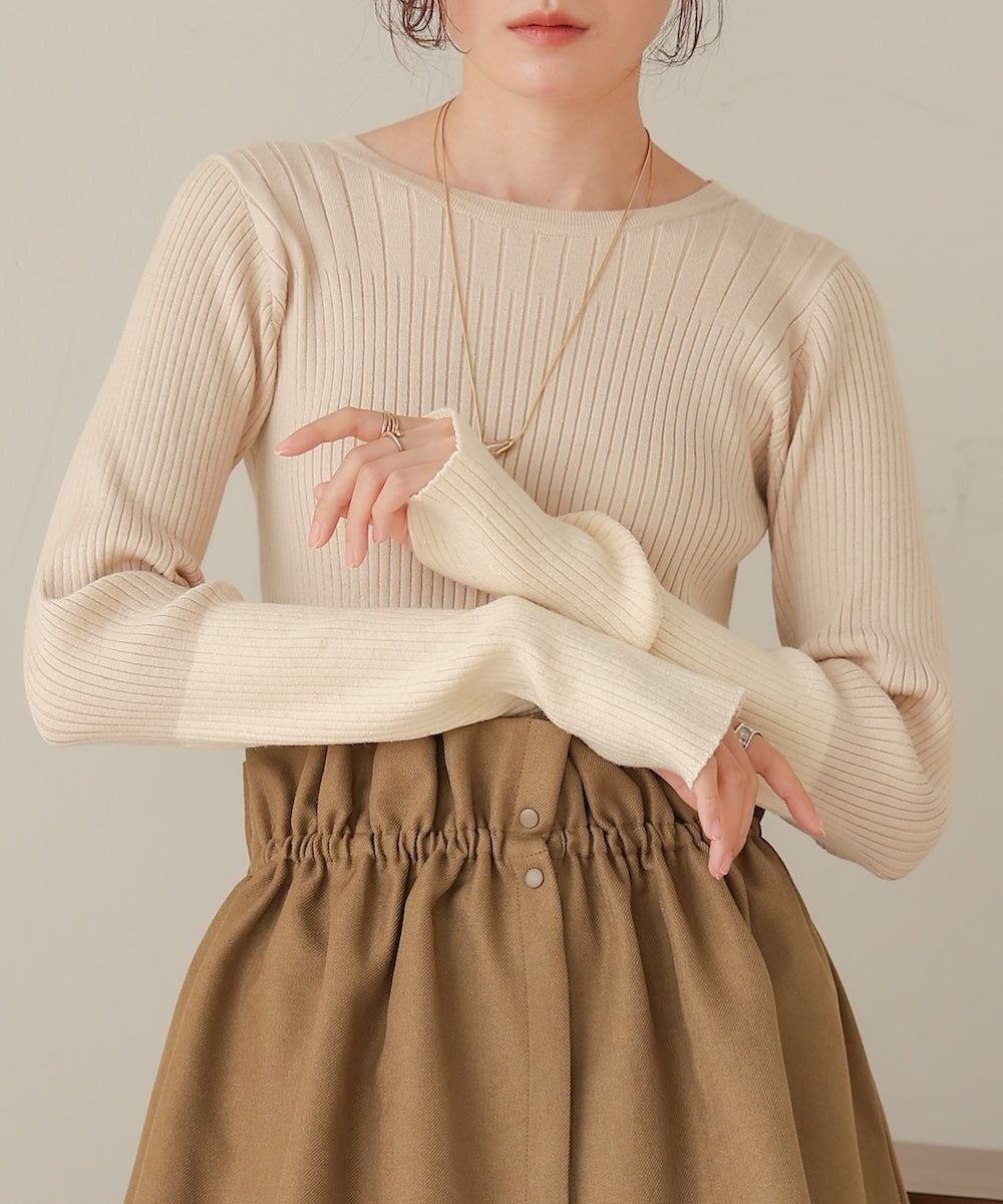 質感羅紋配色長袖上衣(指孔設計)
