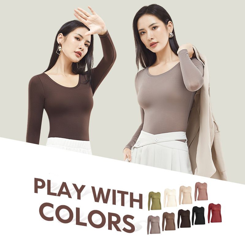 隱藏式內搭無痕高彈保暖發熱衣-蜜豆沙