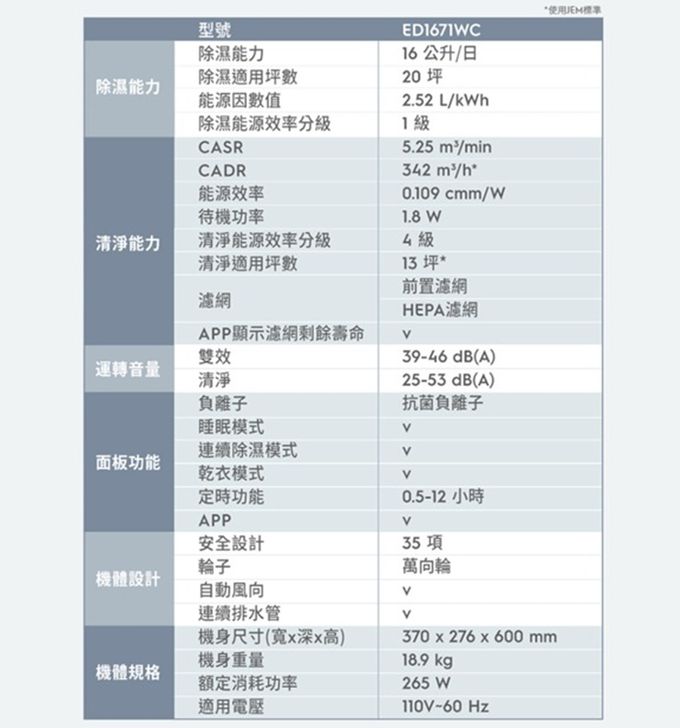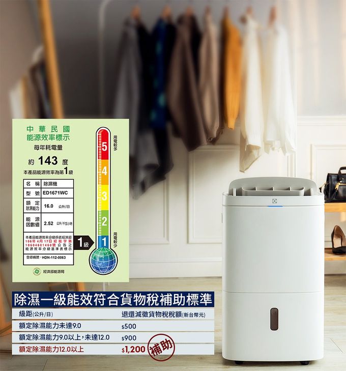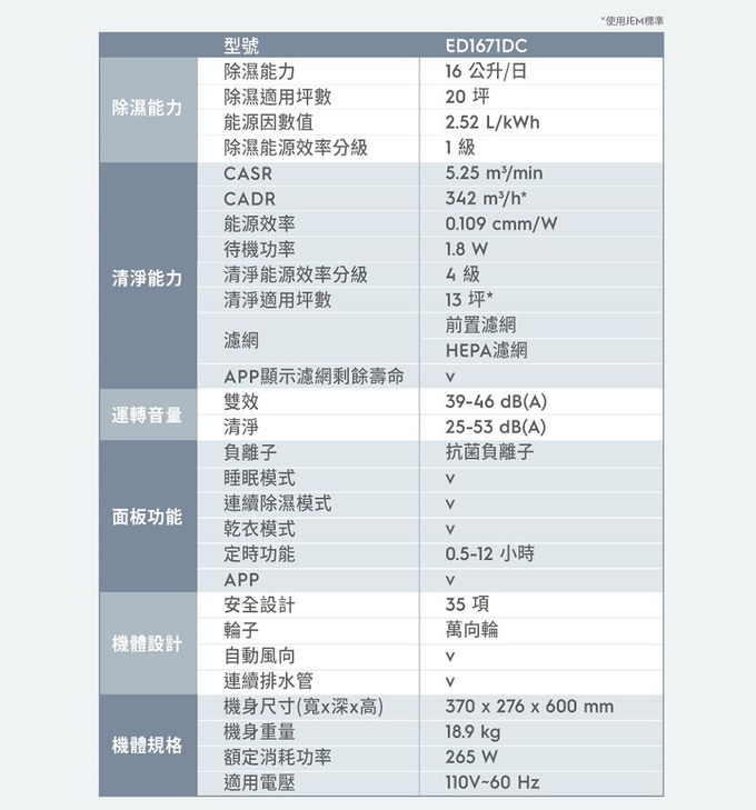 品名:極適家居700清淨除濕機16L(ED1671DC)