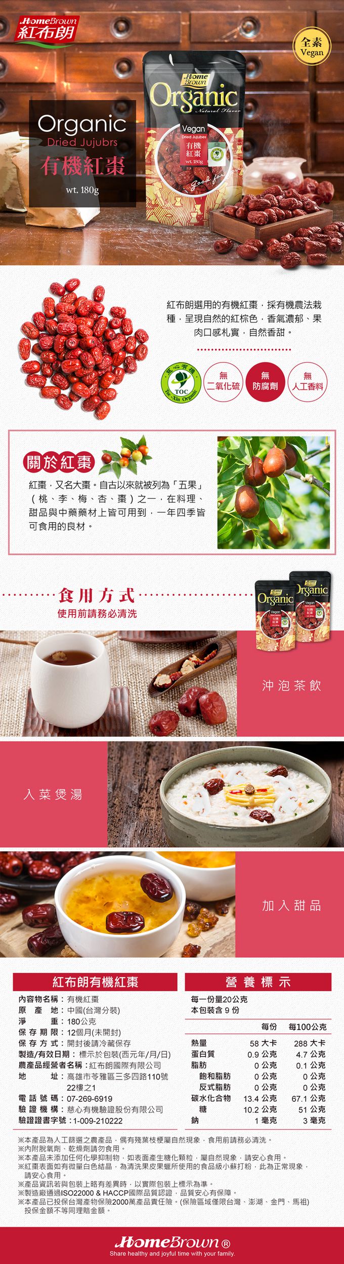注意事項:1.本產品為人工篩選之農產品,偶有殘葉枝梗屬自然現象,食用前請務必清洗。 2.內附脫氧劑、乾燥劑請勿食用。 3.本產品未添加任何化學抑制物,如表面產生糖化顆粒,屬自然現象,請安心食用。 4.紅棗表面如有微量白色結晶,為清洗果皮果蠟所使用的食品級小蘇打粉,此為正常現象,請安心食用。