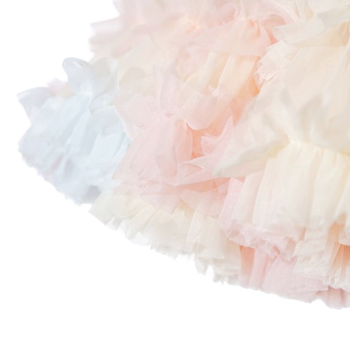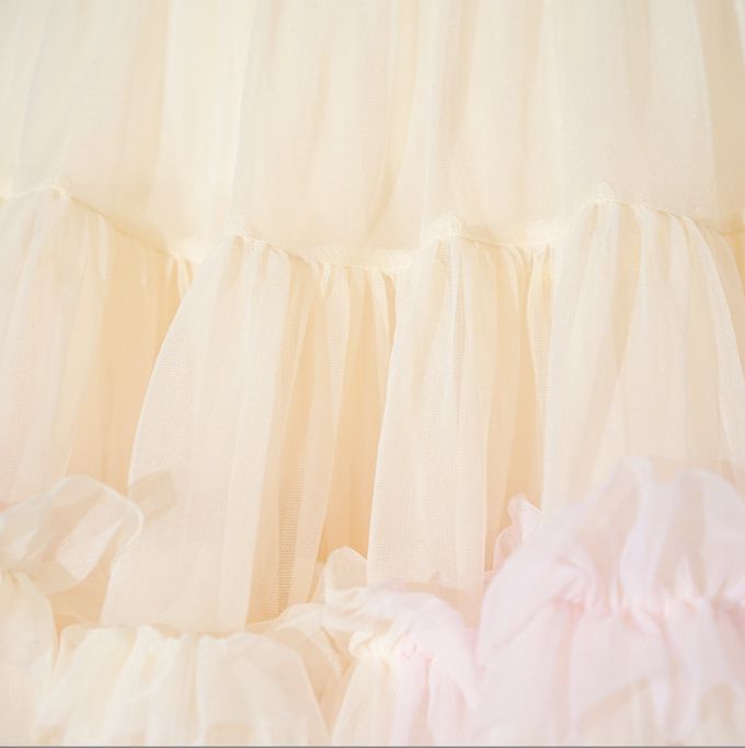 百搭蓬蓬柔軟多層加蓬網紗裙(純棉加寬鬆緊腰頭)-香草黃+彩虹馬卡龍