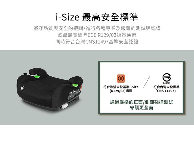 產品相關安全檢驗報告:歐盟i-Size最高標準ECE R129/03認證 台灣CNS 11497 基準認證