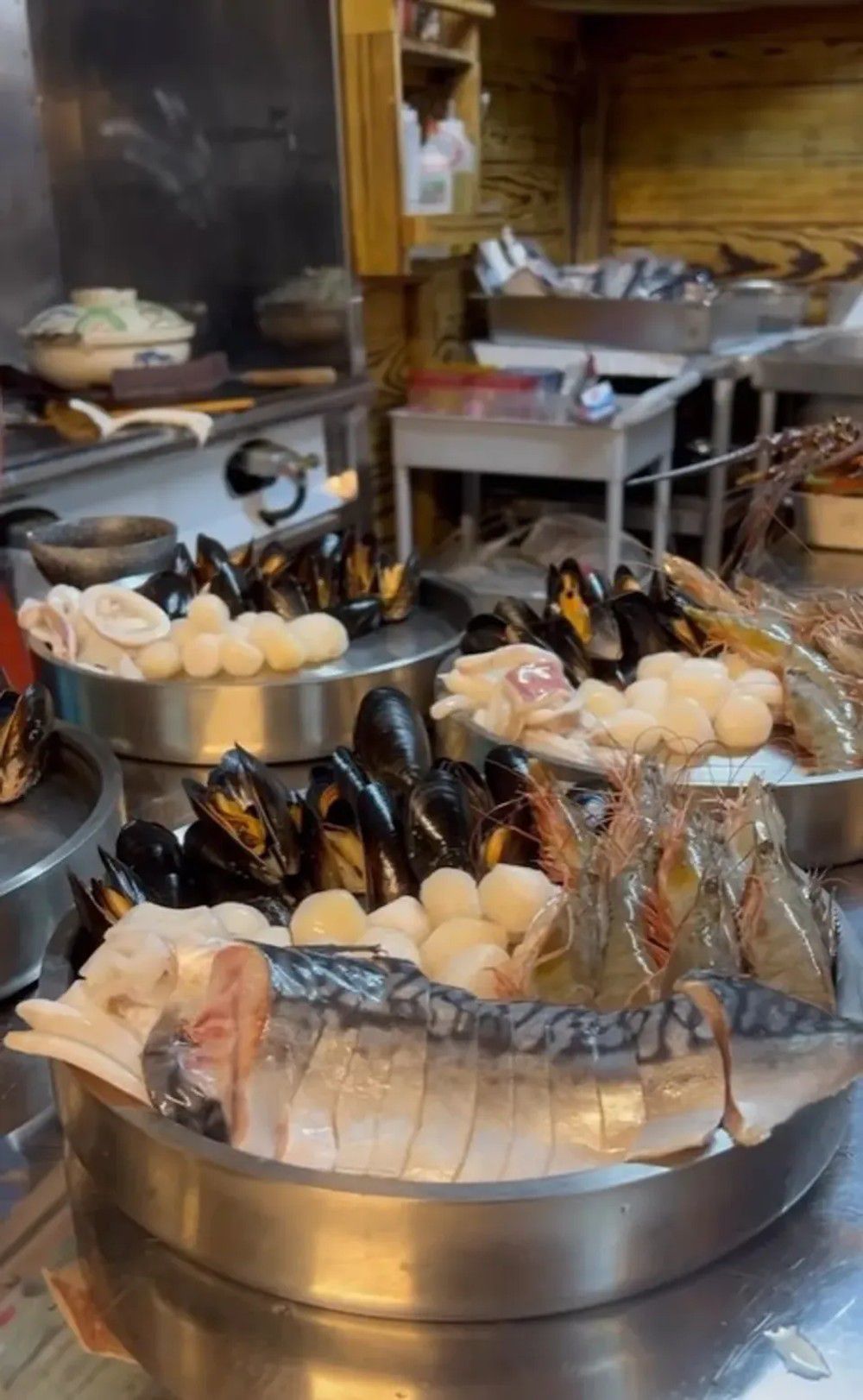 晚餐真的超級豪華!是火烤兩吃(使用鑄鐵烤盤),會有蔬菜一大盆、肉類(牛肉、豬肉、日和骰子牛)、海鮮類(龍蝦、蝦、鯖魚、淡菜、海灣袋子)、主食(白米飯)。