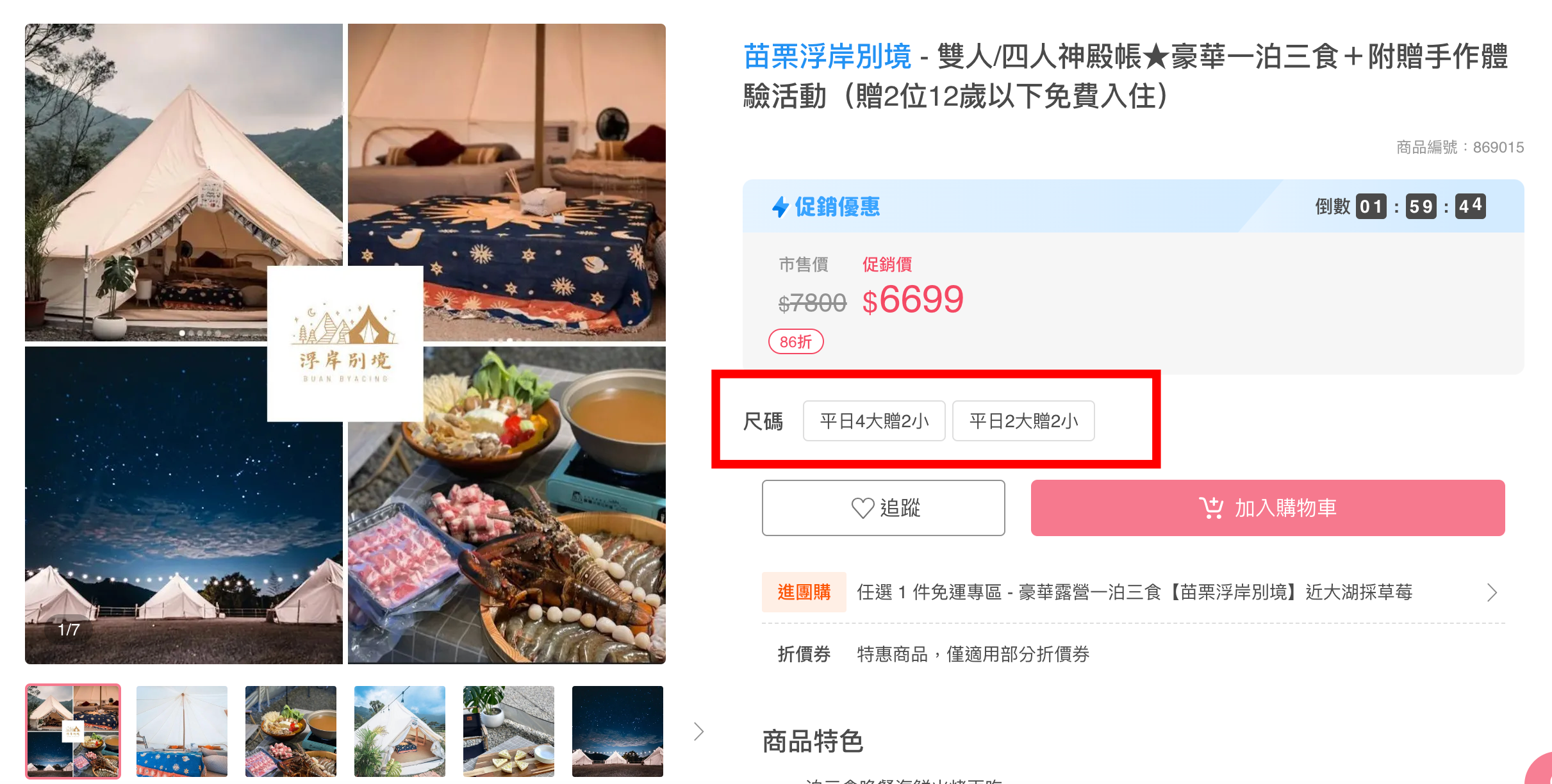 • 品名:雙人/四人神殿帳★豪華一泊三食+附贈手作體驗活動(贈2位12歲以下免費入住)