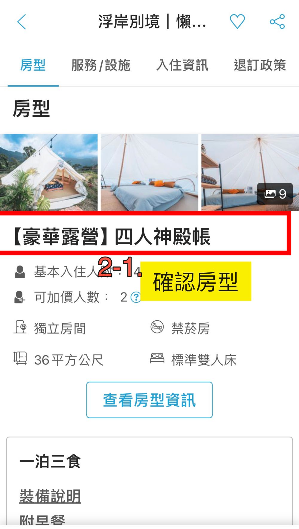 ANS:訂房時,請選擇「專案四人神殿帳一泊三食 / 四人神殿帳(限兩人入住)一泊三食進行空房查詢。
