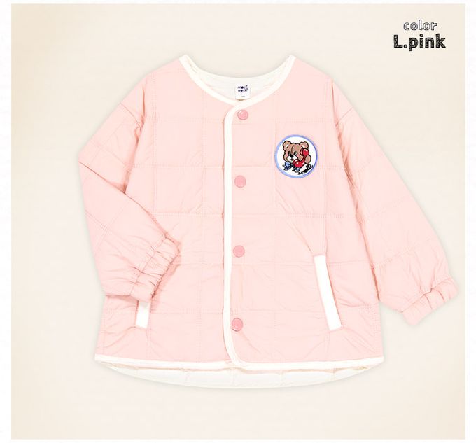 韓國 mollimelli - 熊熊打電話無領絎縫外套-淺粉
