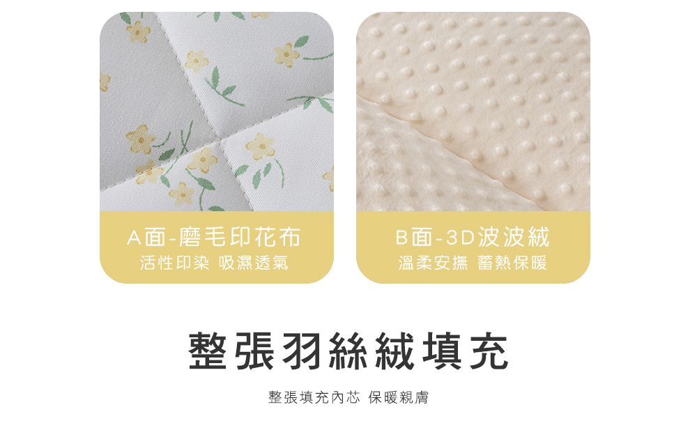 • 成分:表布-100%聚酯纖維(超細磨毛)/底布-100%聚酯纖維(3D波波絨)/內材-100%聚酯纖維(片狀填充)