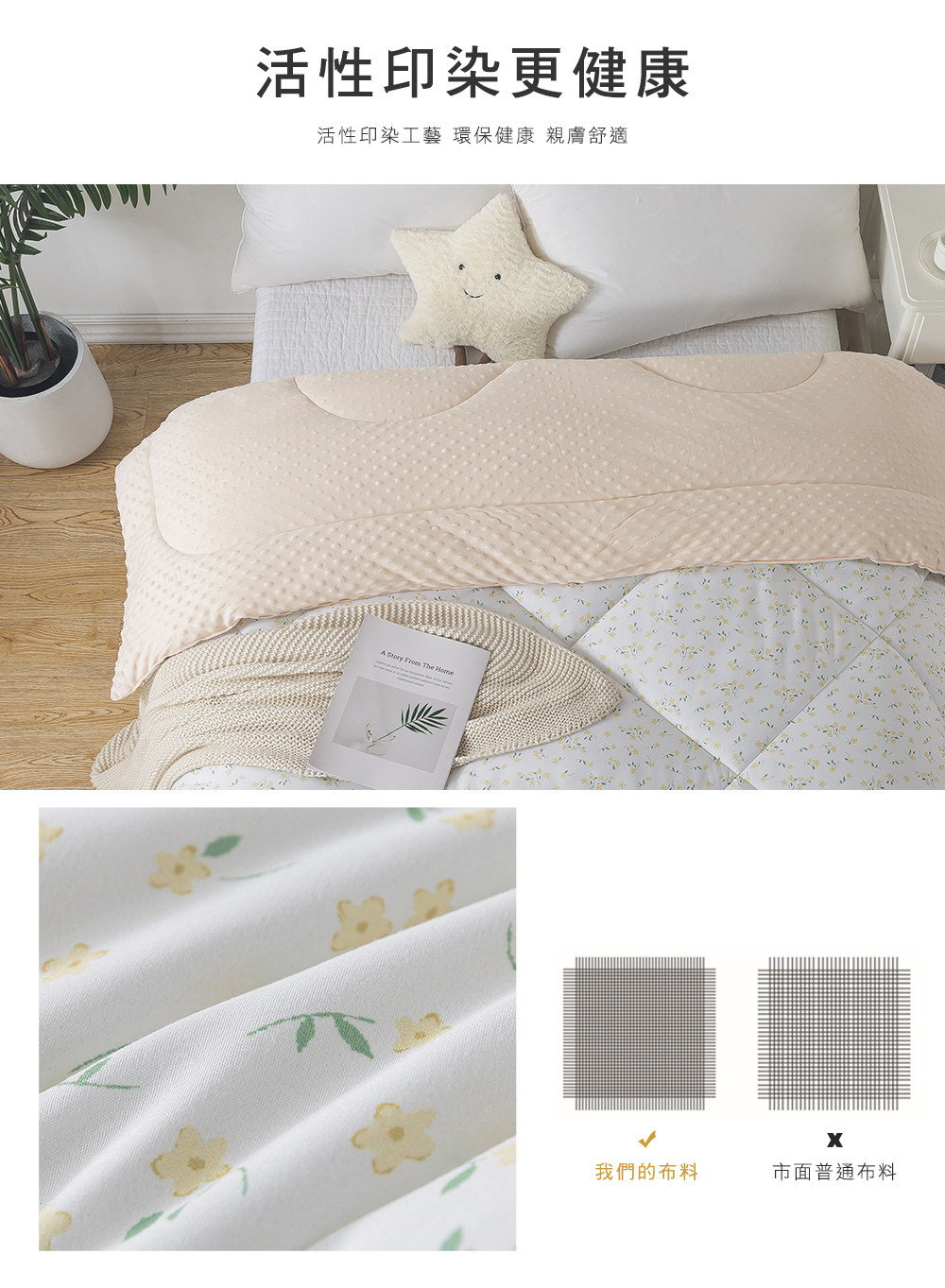 • 注意事項:◎清潔保養方式:可水洗、可乾洗、不可漂白 ◎建議需清潔時送專業洗滌,先將洗劑溶解於水中,再將床寢放入大型洗衣袋後再清洗 ◎本商品不含拍攝道具,以「產品內容」為主 ◆產品顏色可能會因網頁呈現與拍攝關係而有些許差異,請以所收到之實品為準。