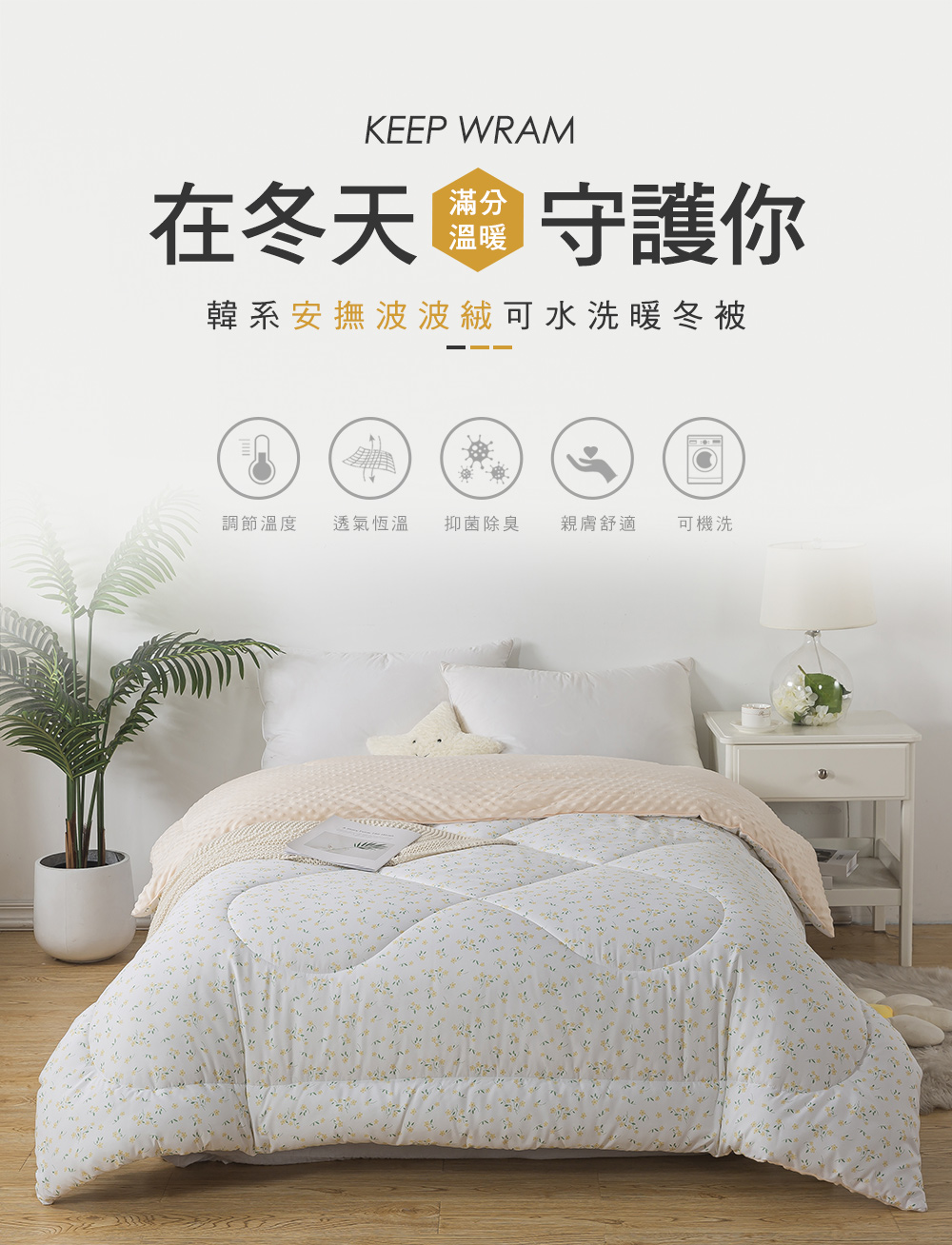 • 品名:3D波波絨可水洗抑菌暖冬被