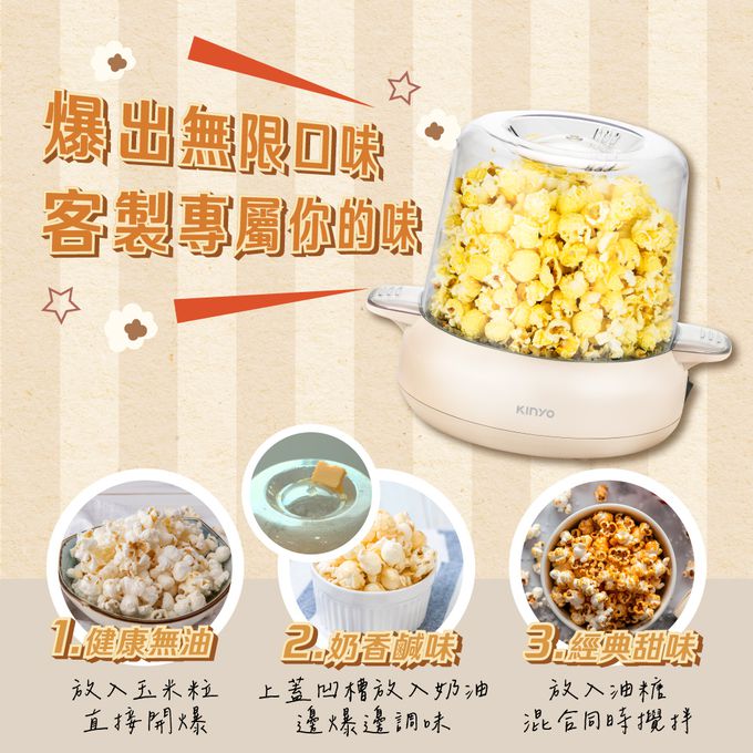 一鍵快速啟動不需預熱5分鐘爆出低卡零食