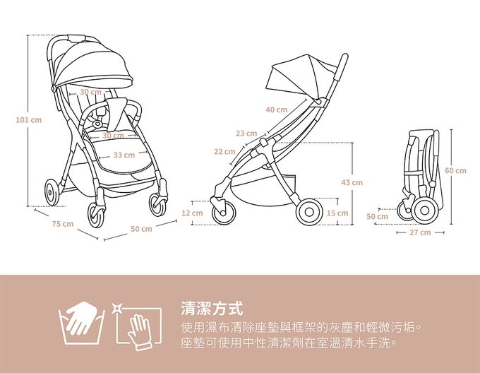 詳細尺寸:展開:W50 x D75 x H101cm 摺疊:W50 x D27 x H60cm