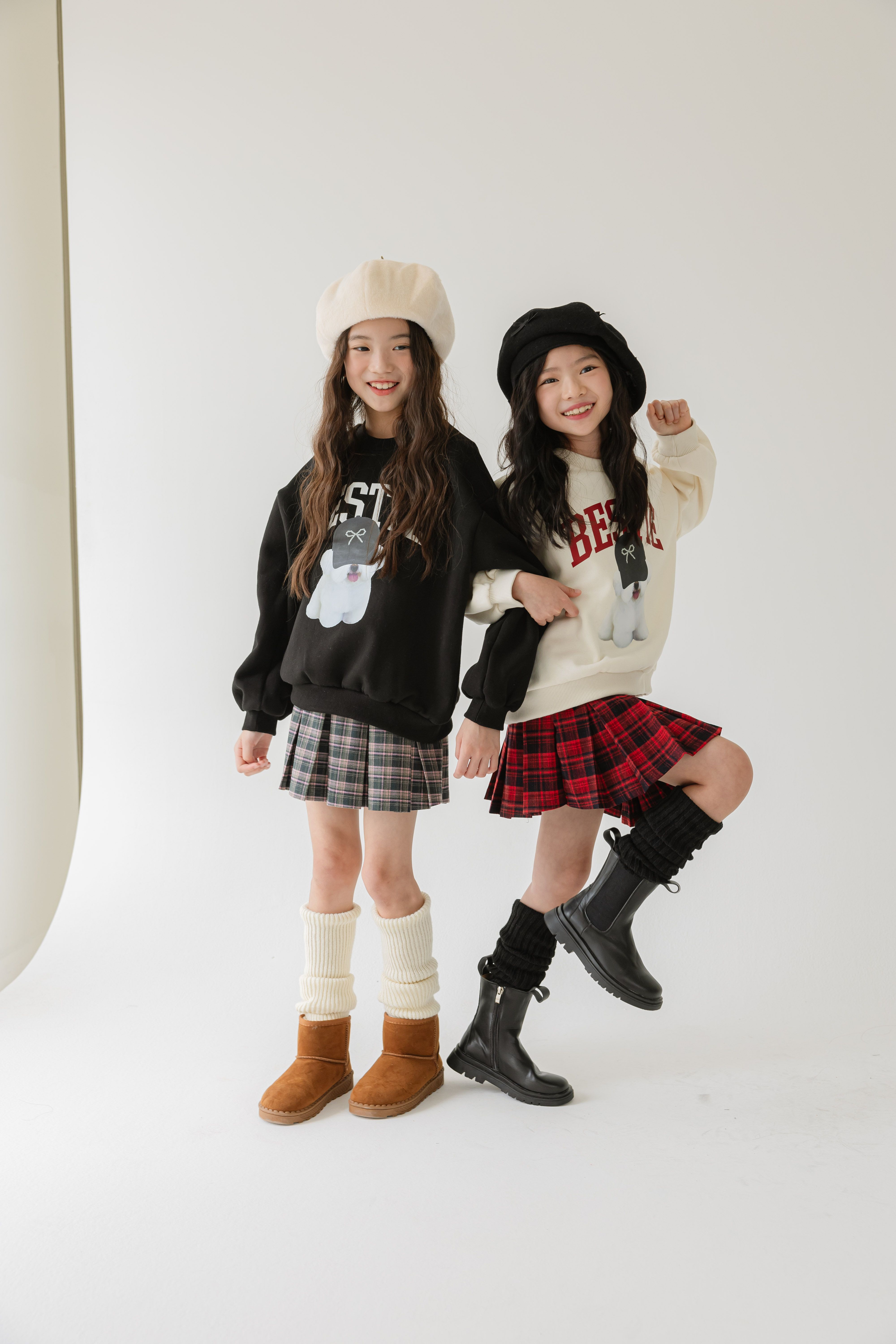韓國 sm2 - 鬆緊腰格紋桃皮絨百褶褲裙
