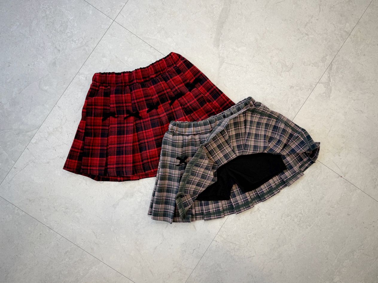 • 品名:鬆緊腰格紋桃皮絨百褶褲裙