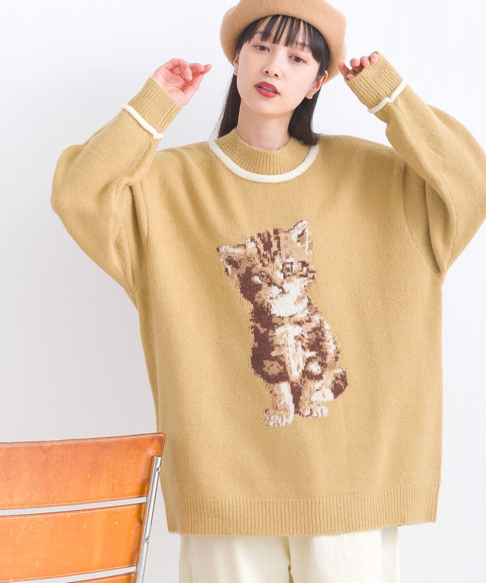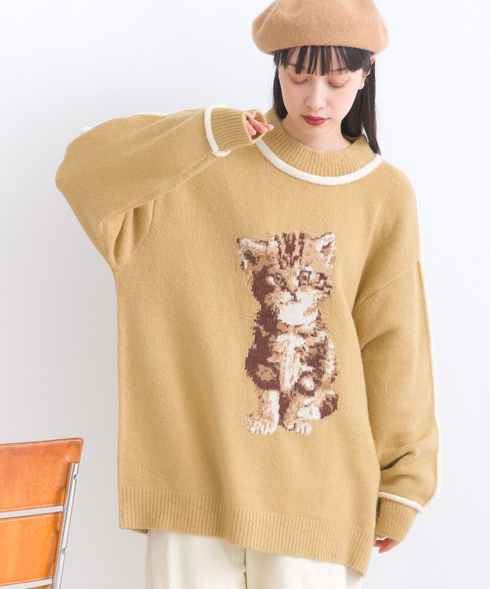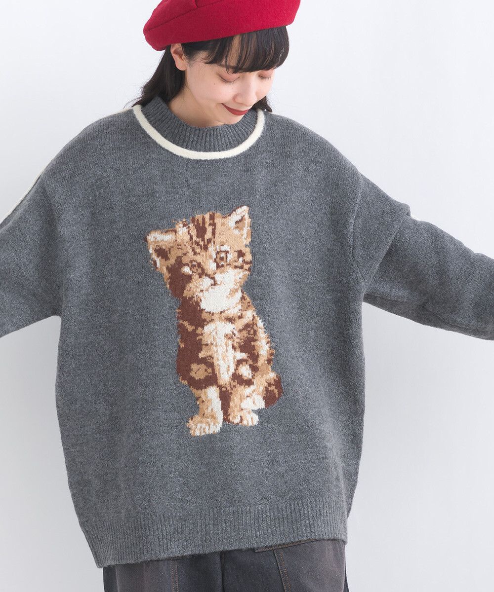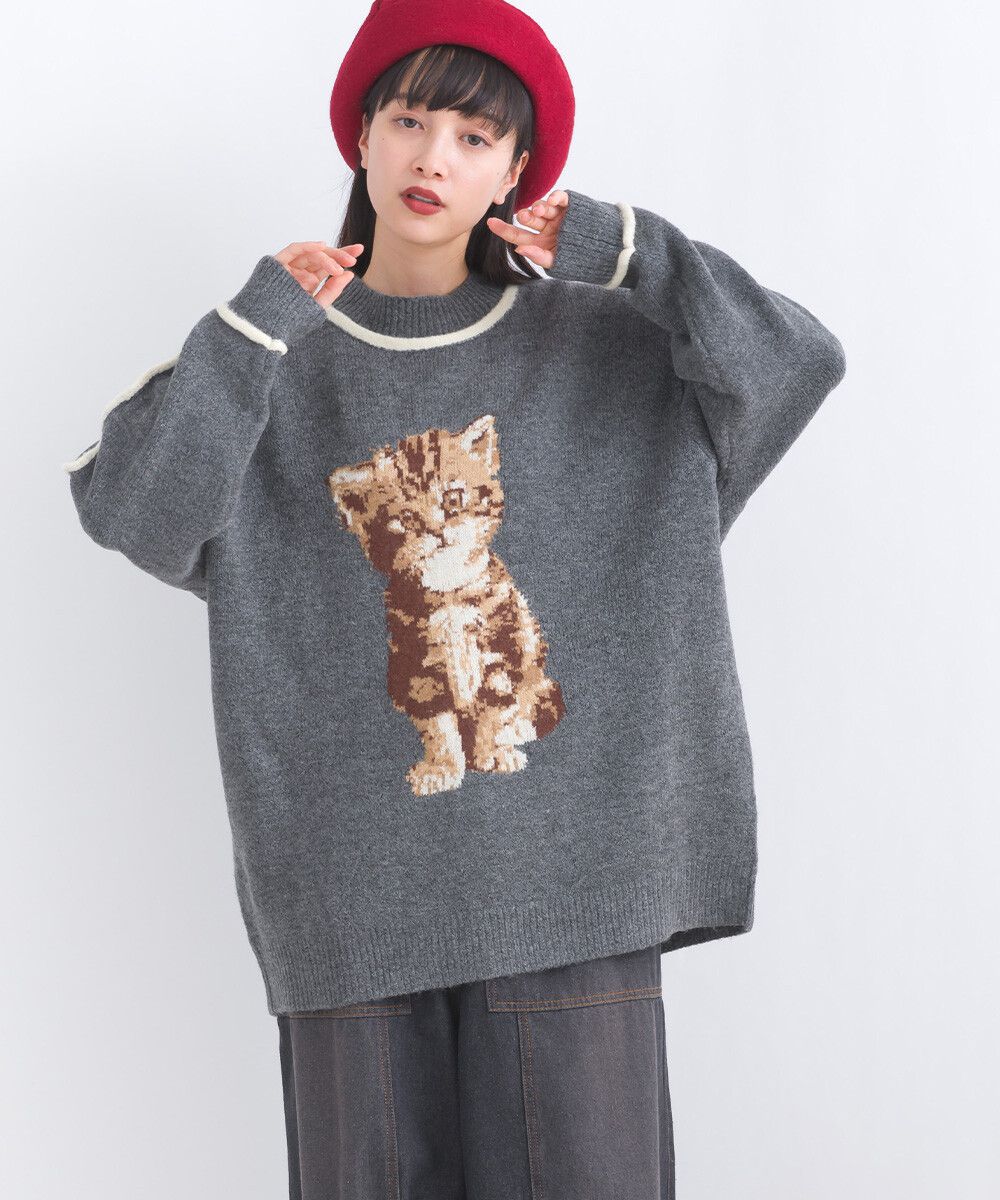 可愛貓咪印花小立領針織毛衣