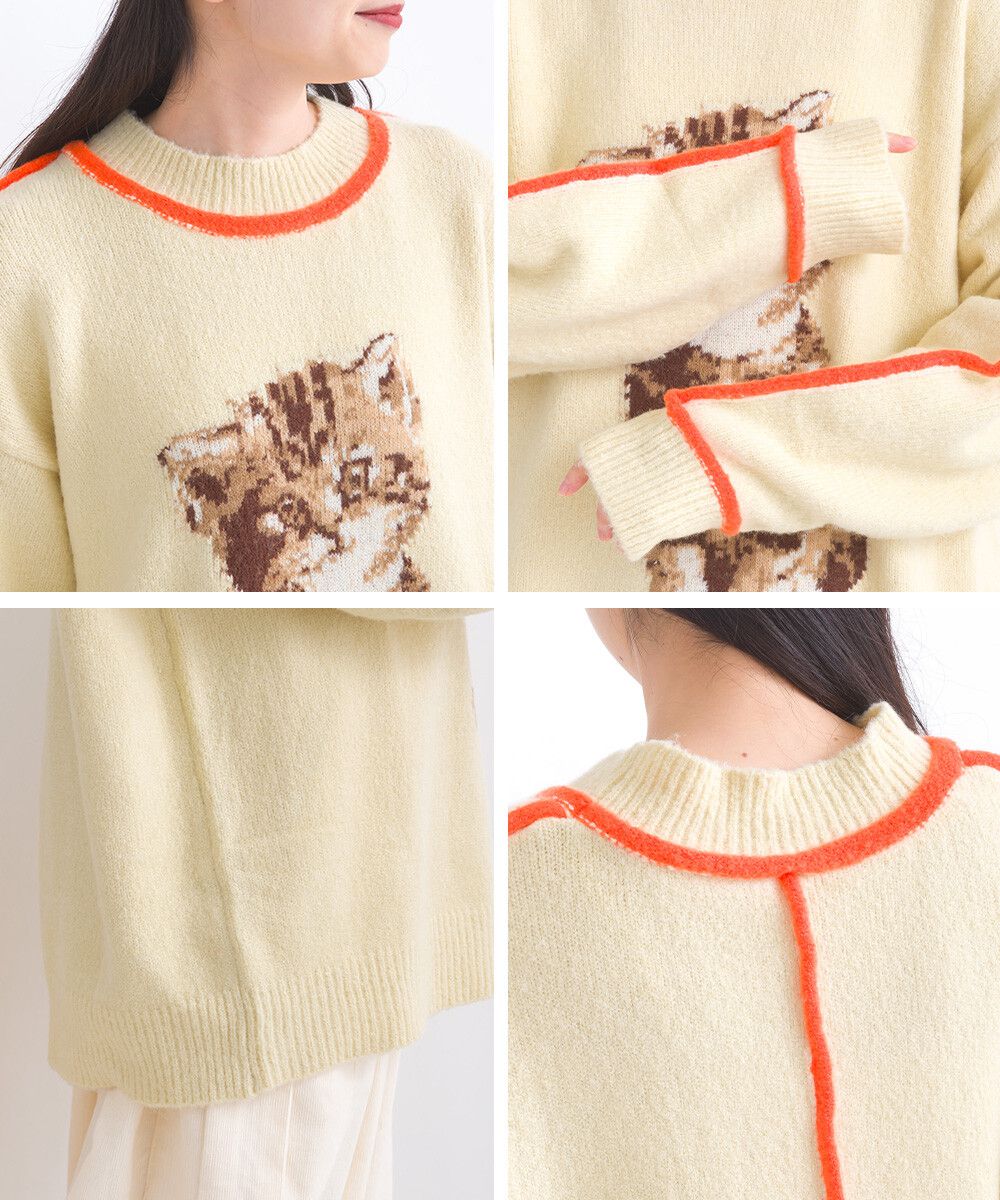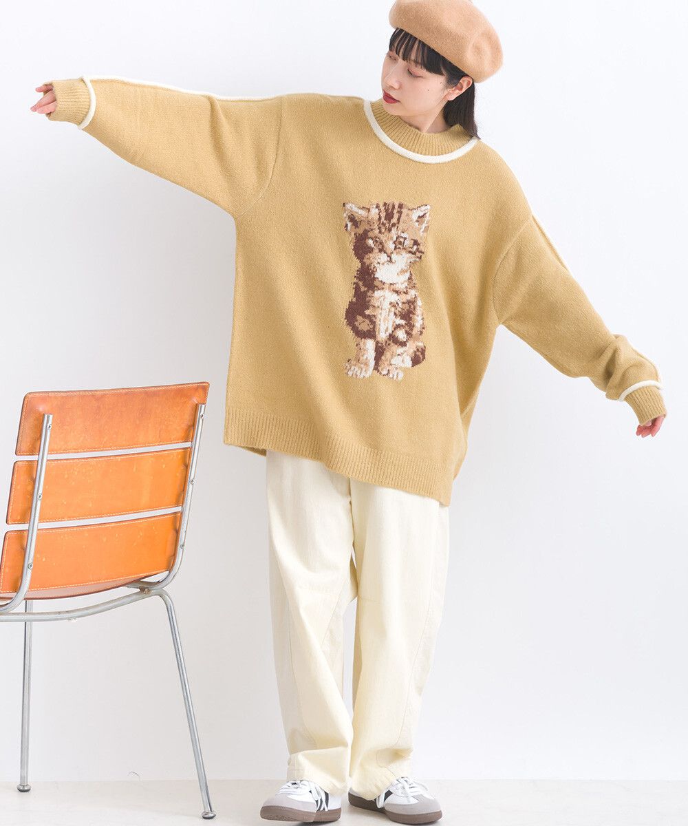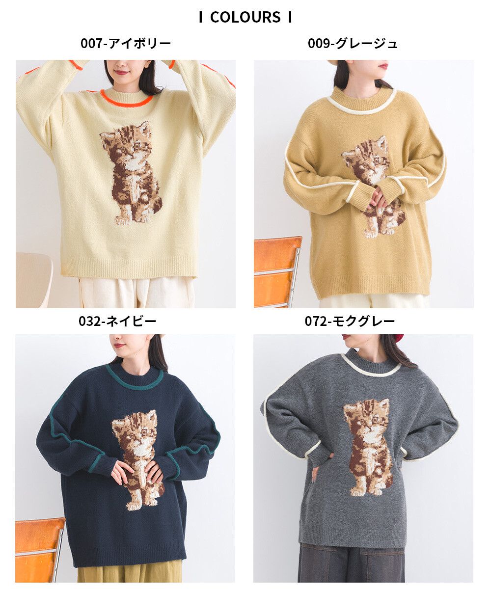 可愛貓咪印花小立領針織毛衣