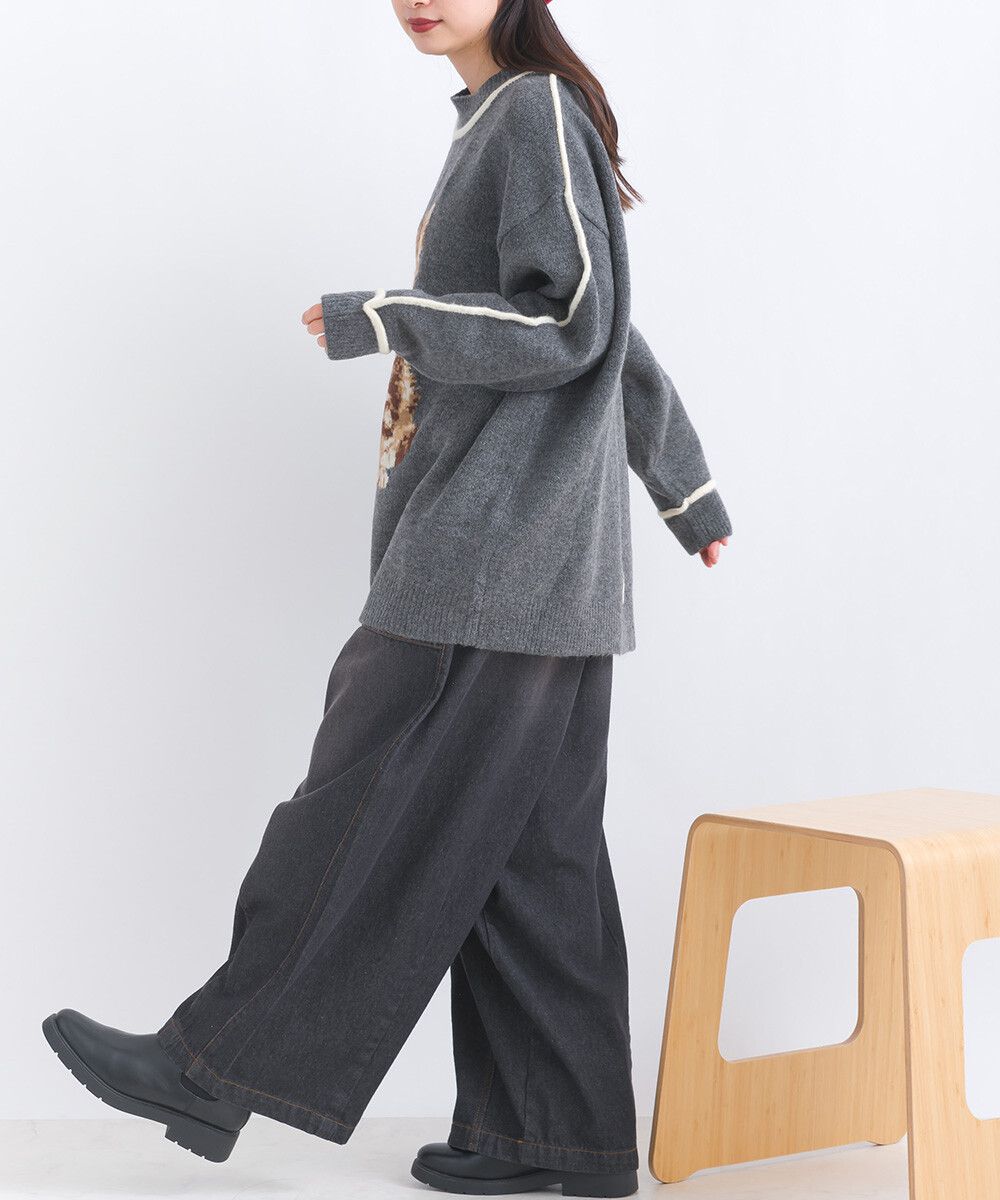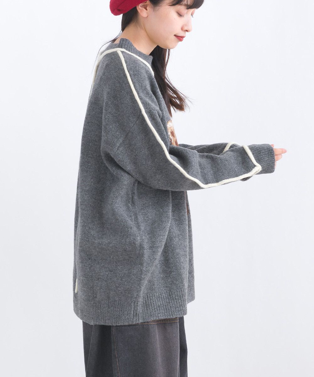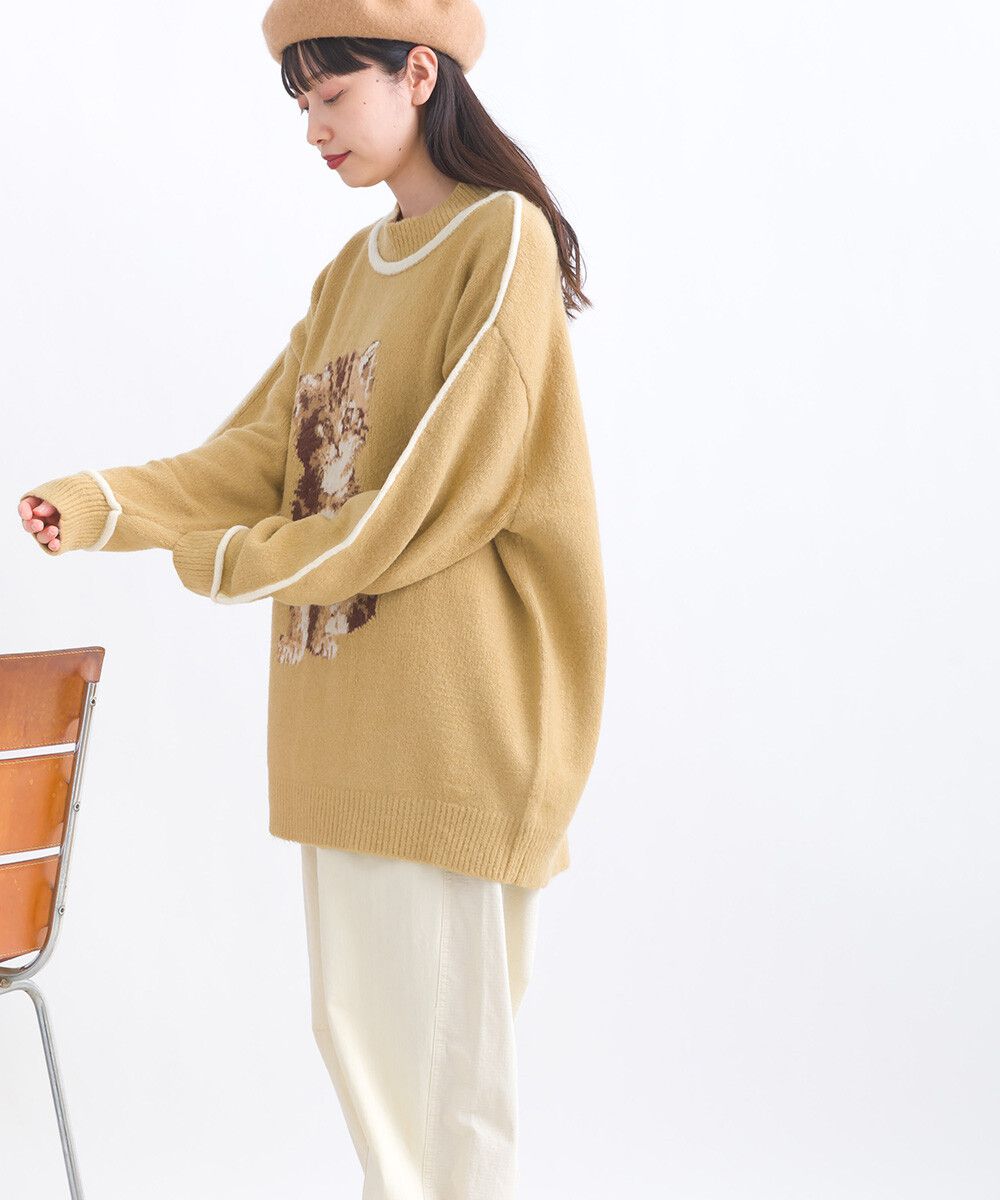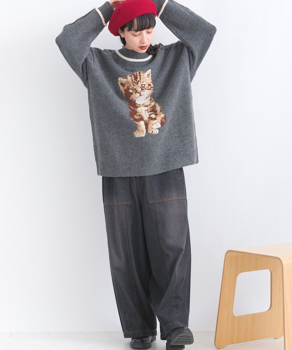 可愛貓咪印花小立領針織毛衣