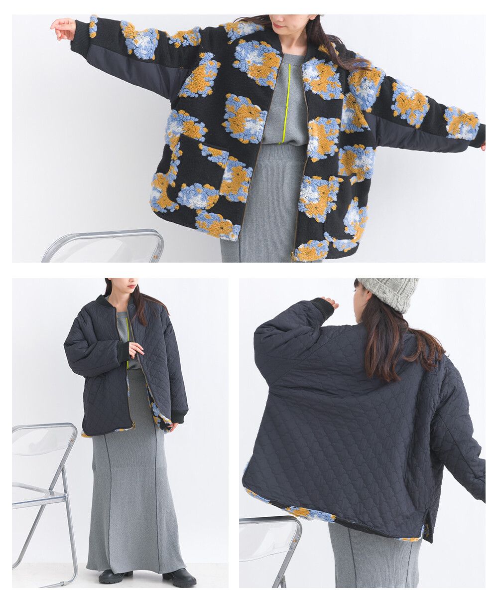 雙面穿搶眼印花x絎縫溫暖鋪棉外套