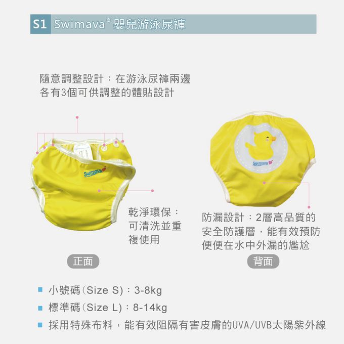 - 可取代傳統一次性游泳尿布,清洗後可重複使用
