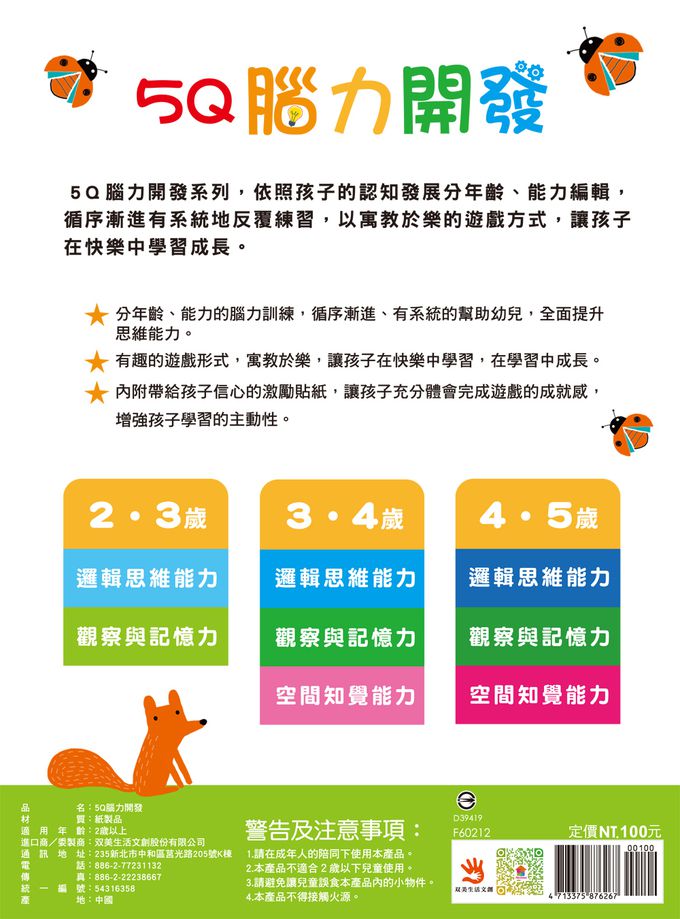 5Q腦力開發:2-3歲(觀察與記憶力)(1本練習本+75張貼紙)