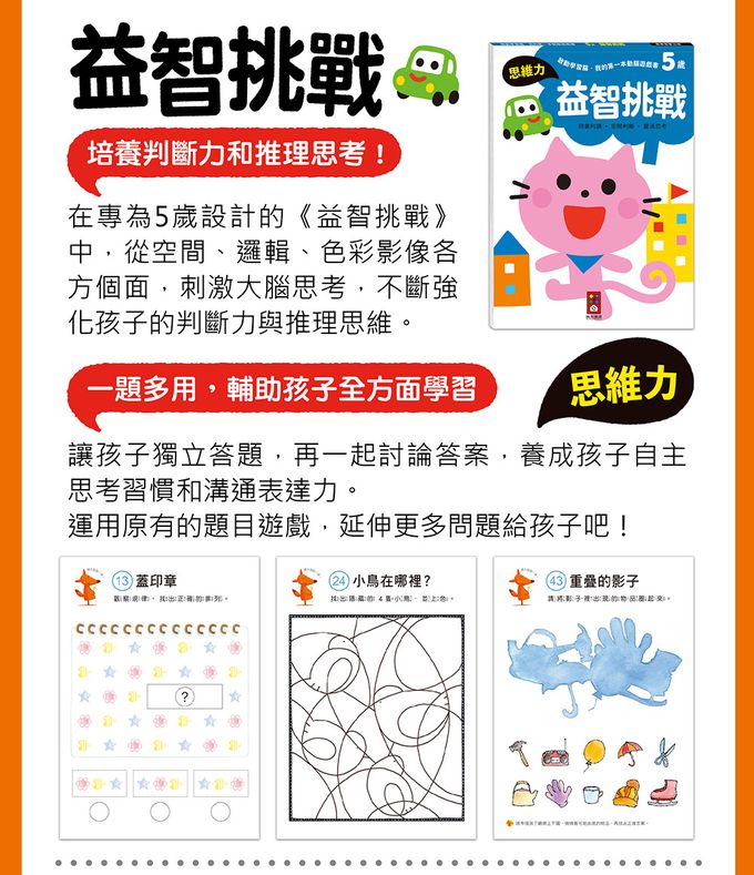 題目類型內容和幼兒園書本類似,孩子有興趣。