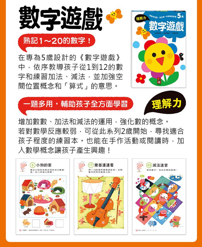 品名:5歲數字遊戲-啟動學習腦.我的第一本動腦遊戲書
