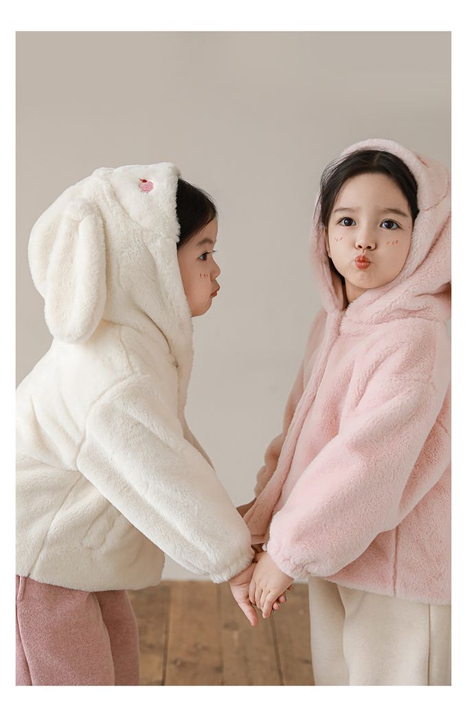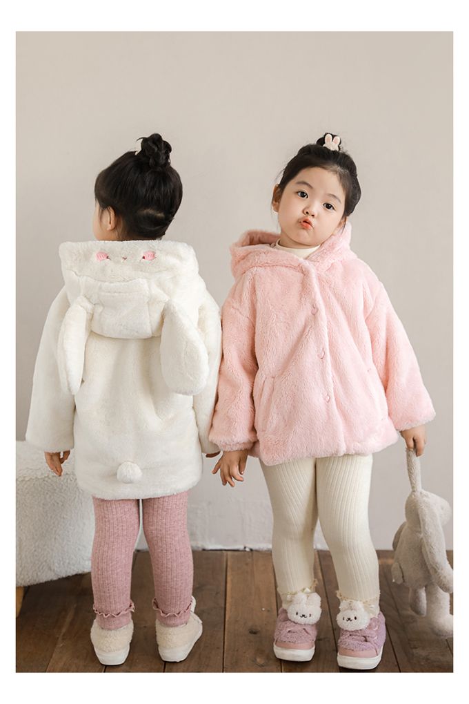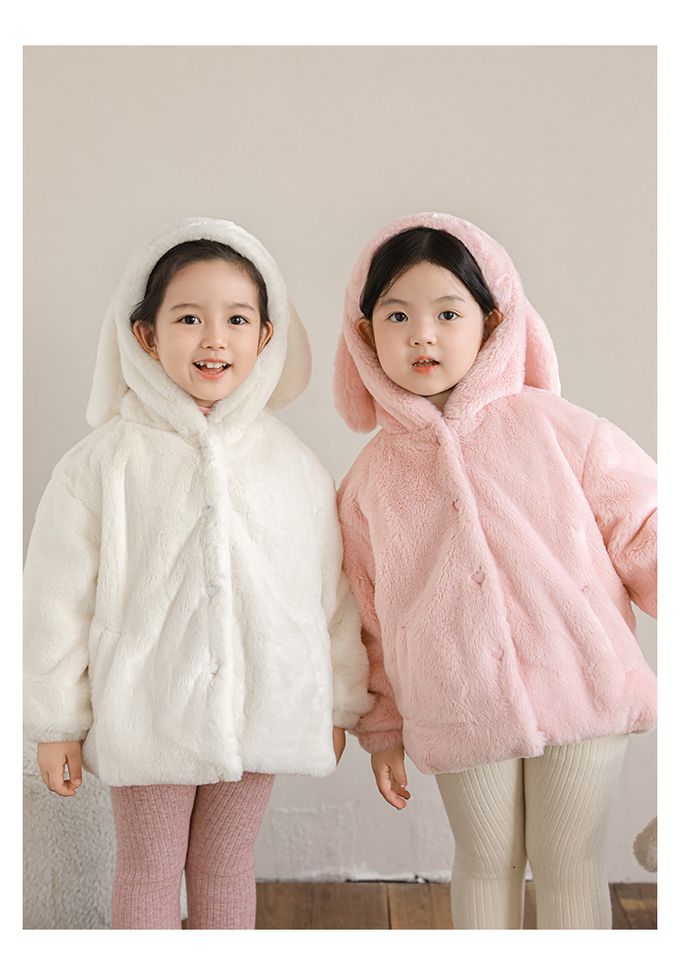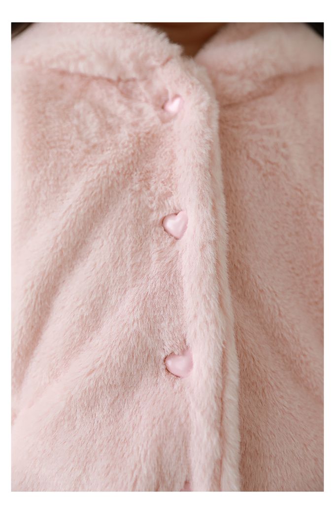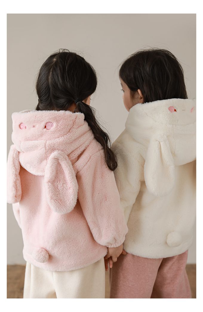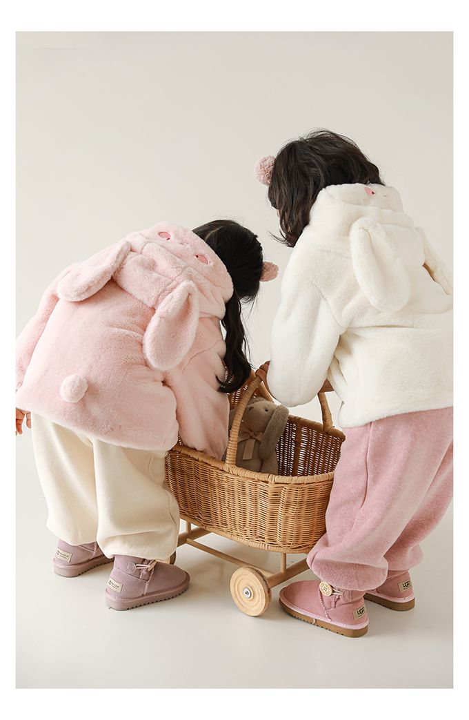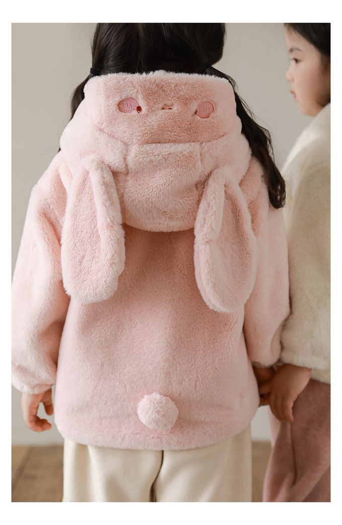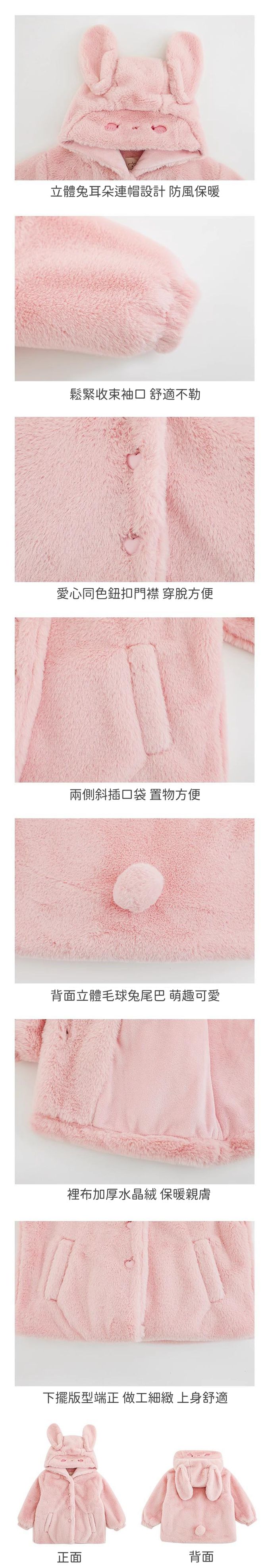 仿兔絨加厚保暖連帽外套-立體兔子耳朵-粉色