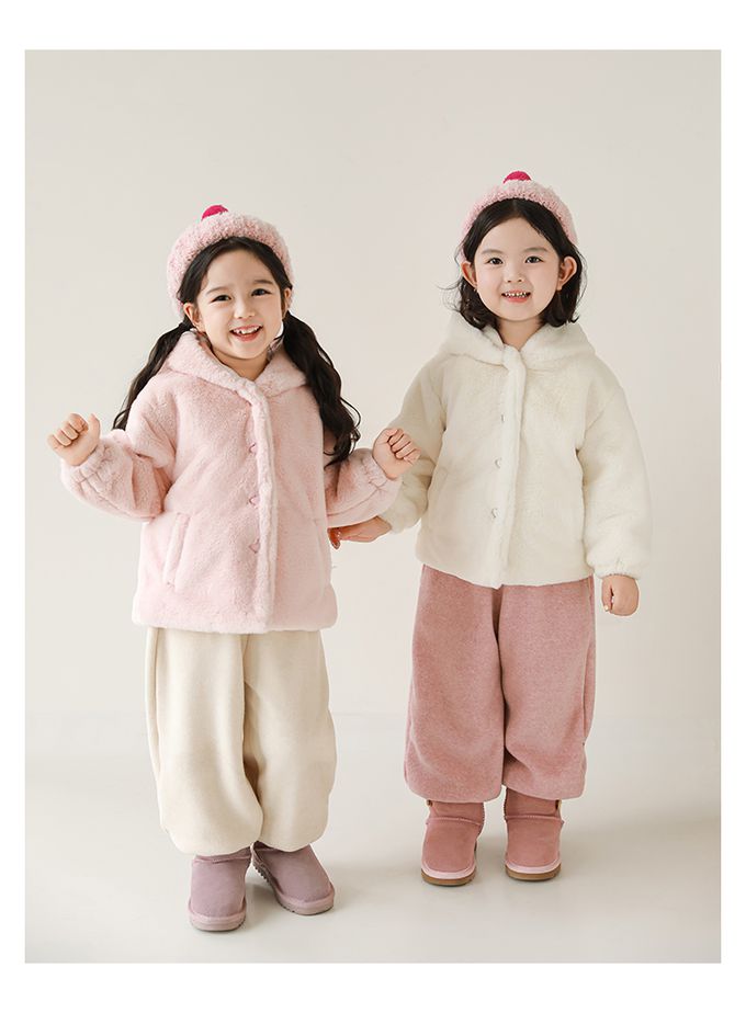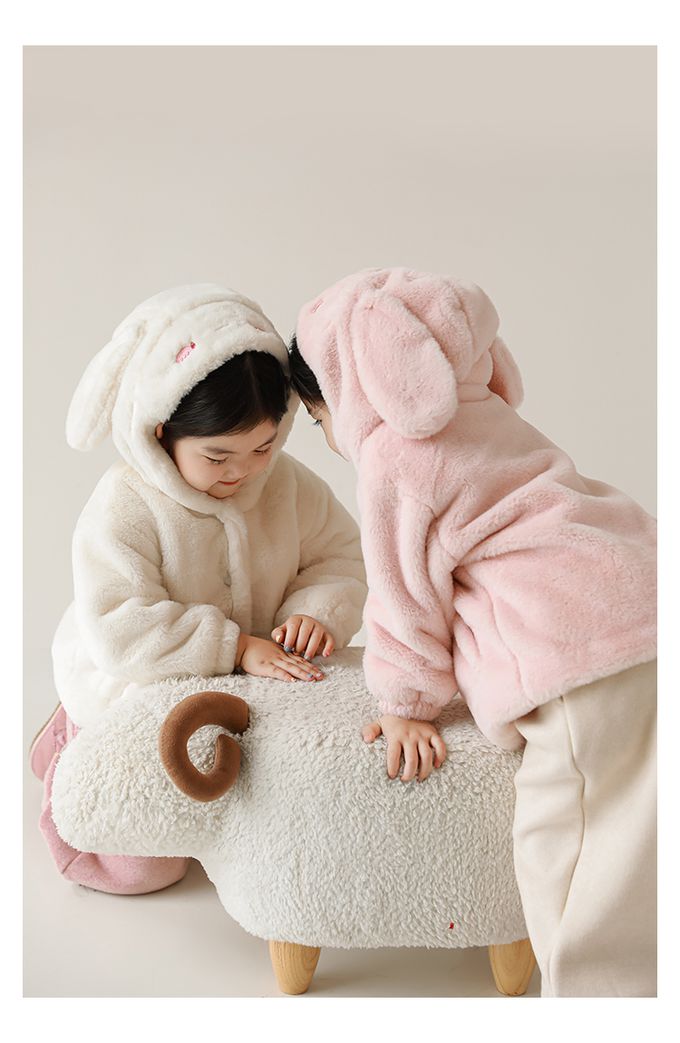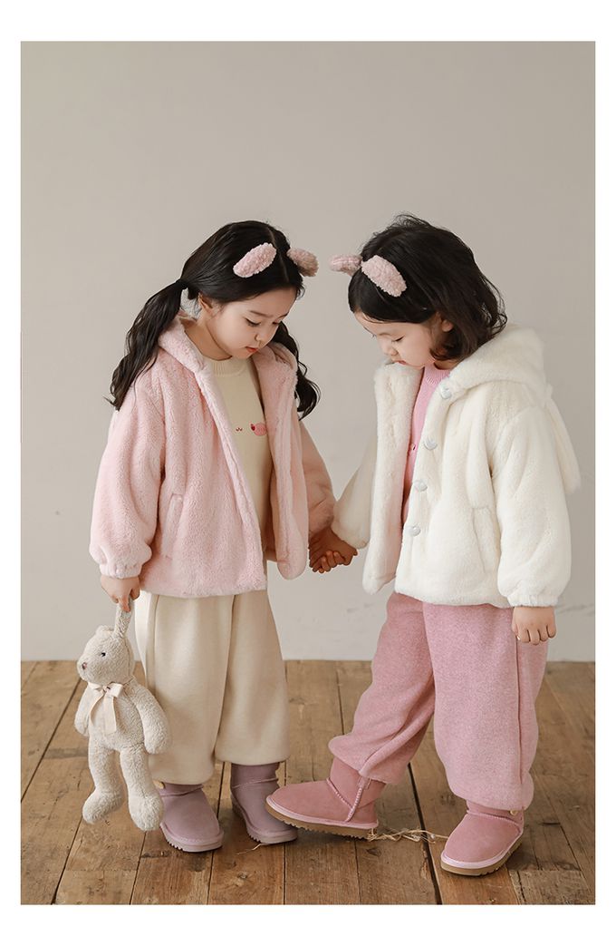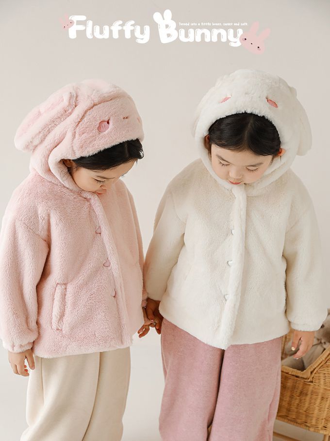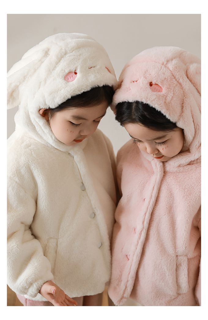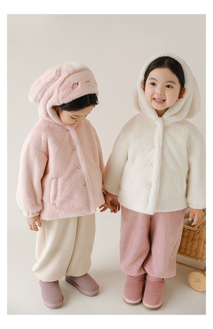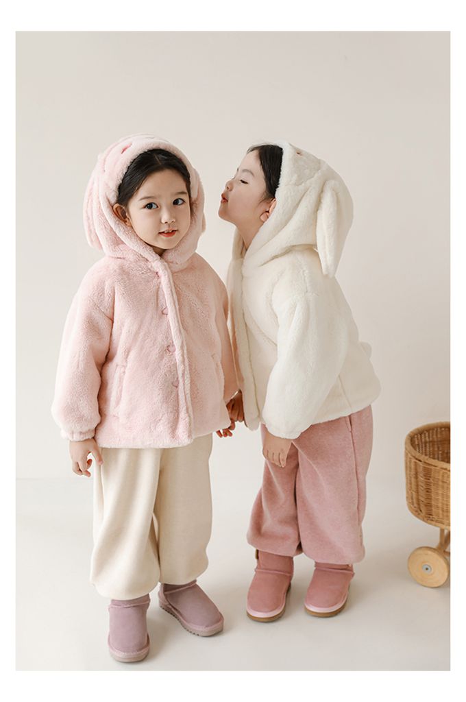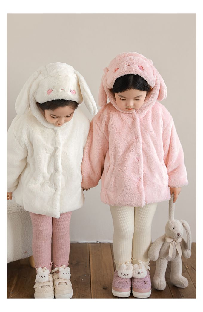 仿兔絨加厚保暖連帽外套-立體兔子耳朵-粉色