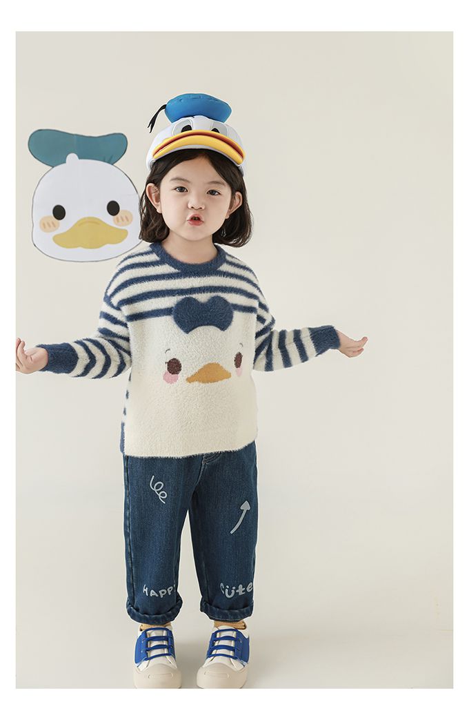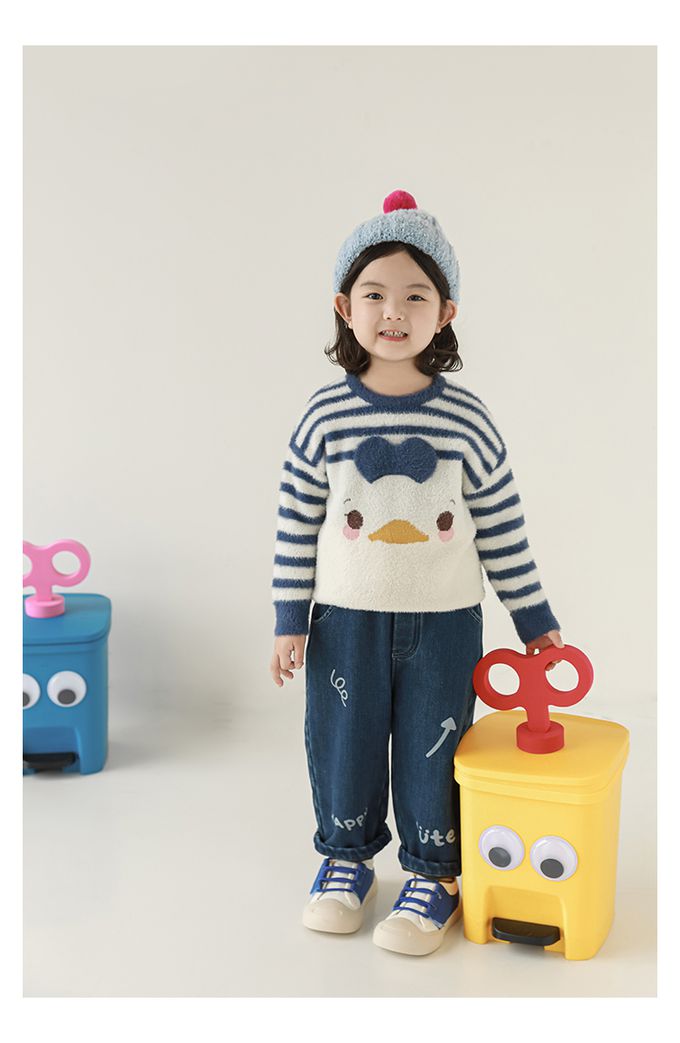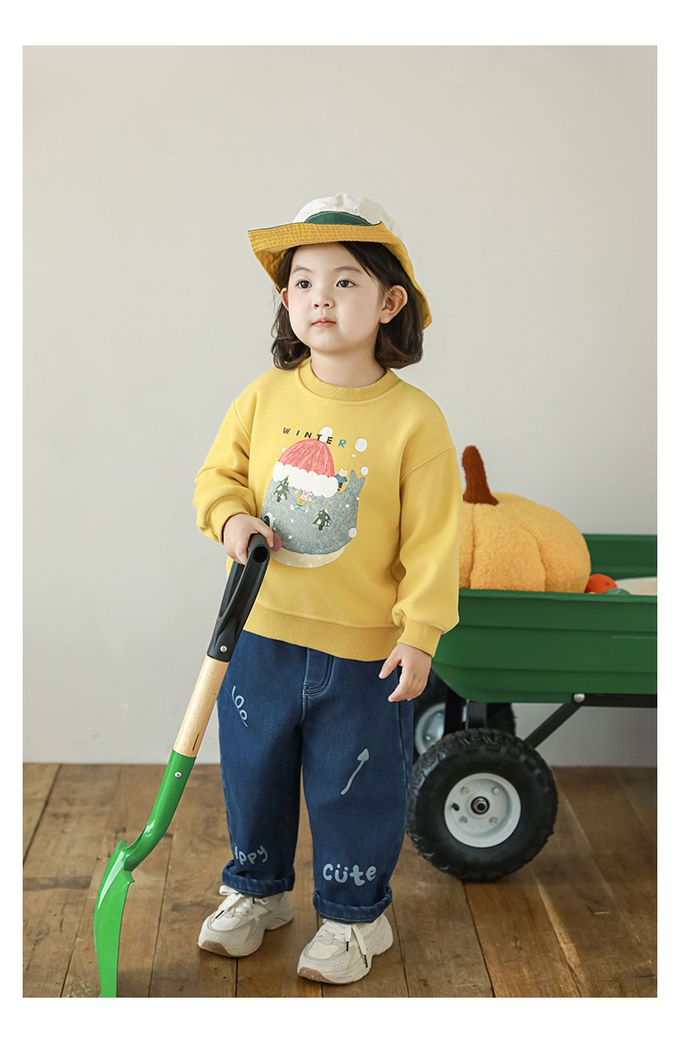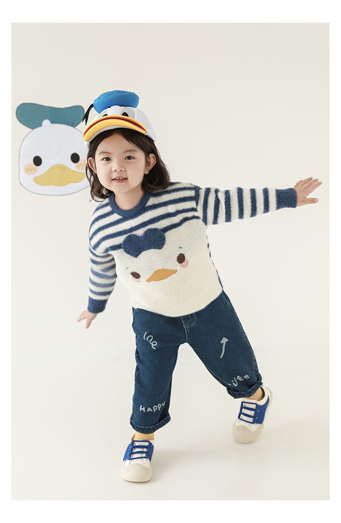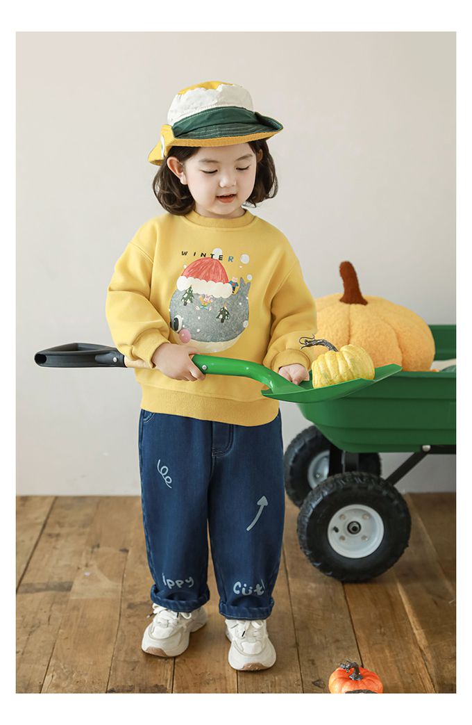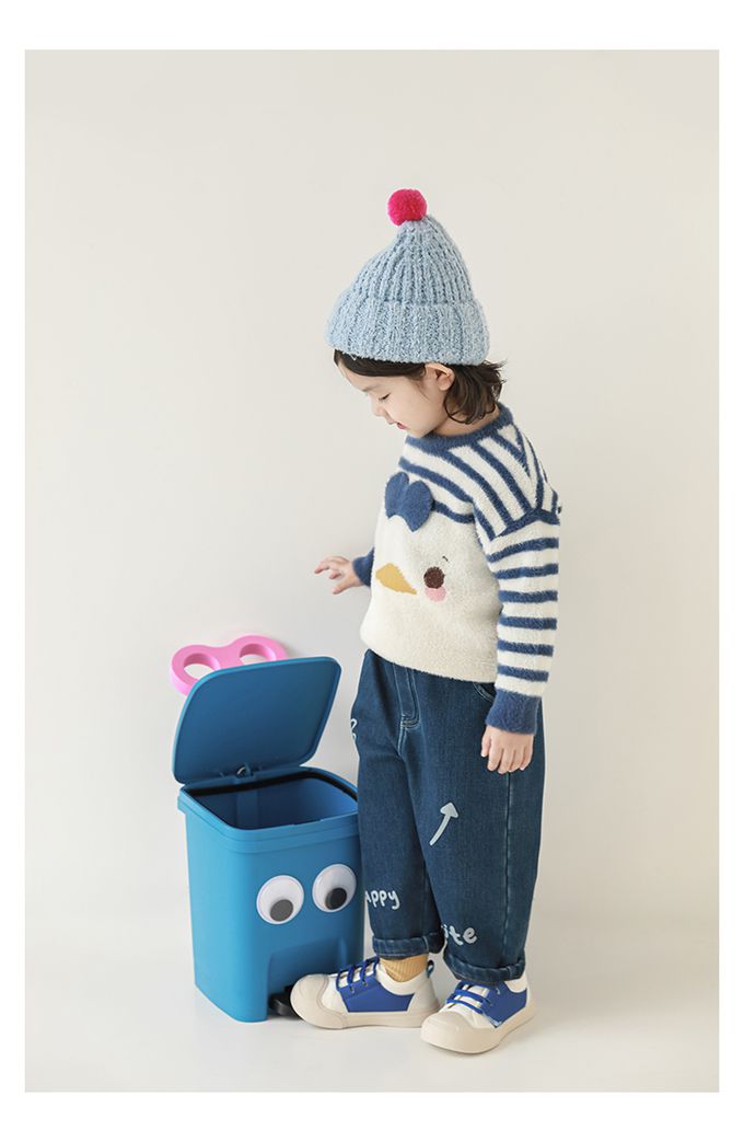 腰鬆緊休閒軟牛仔長褲(加絨)-HAPPY&CUTE-深藍色