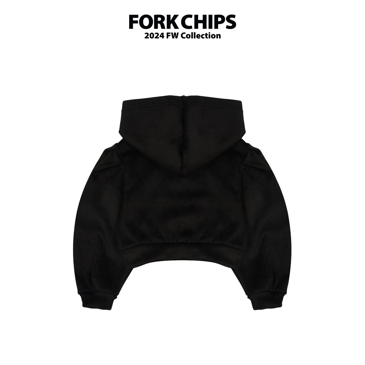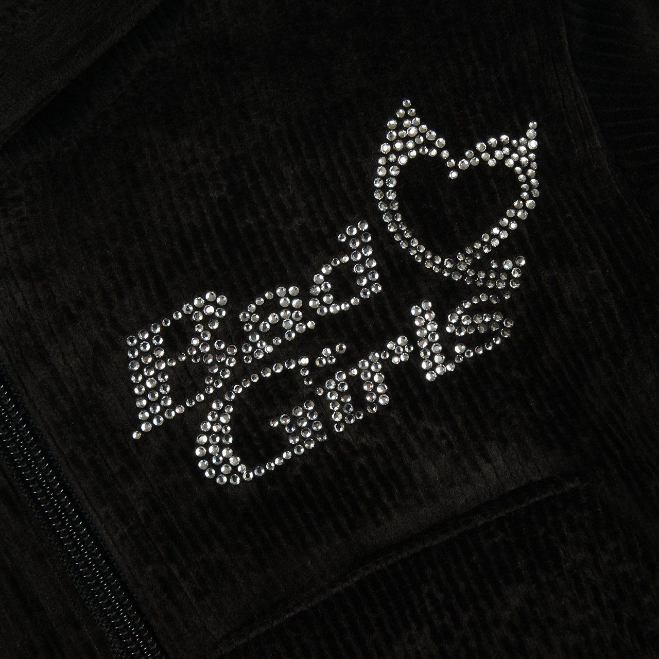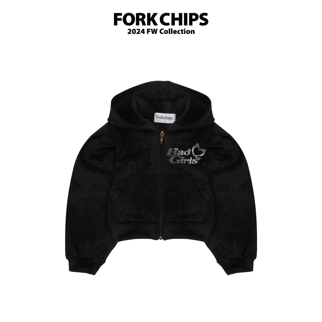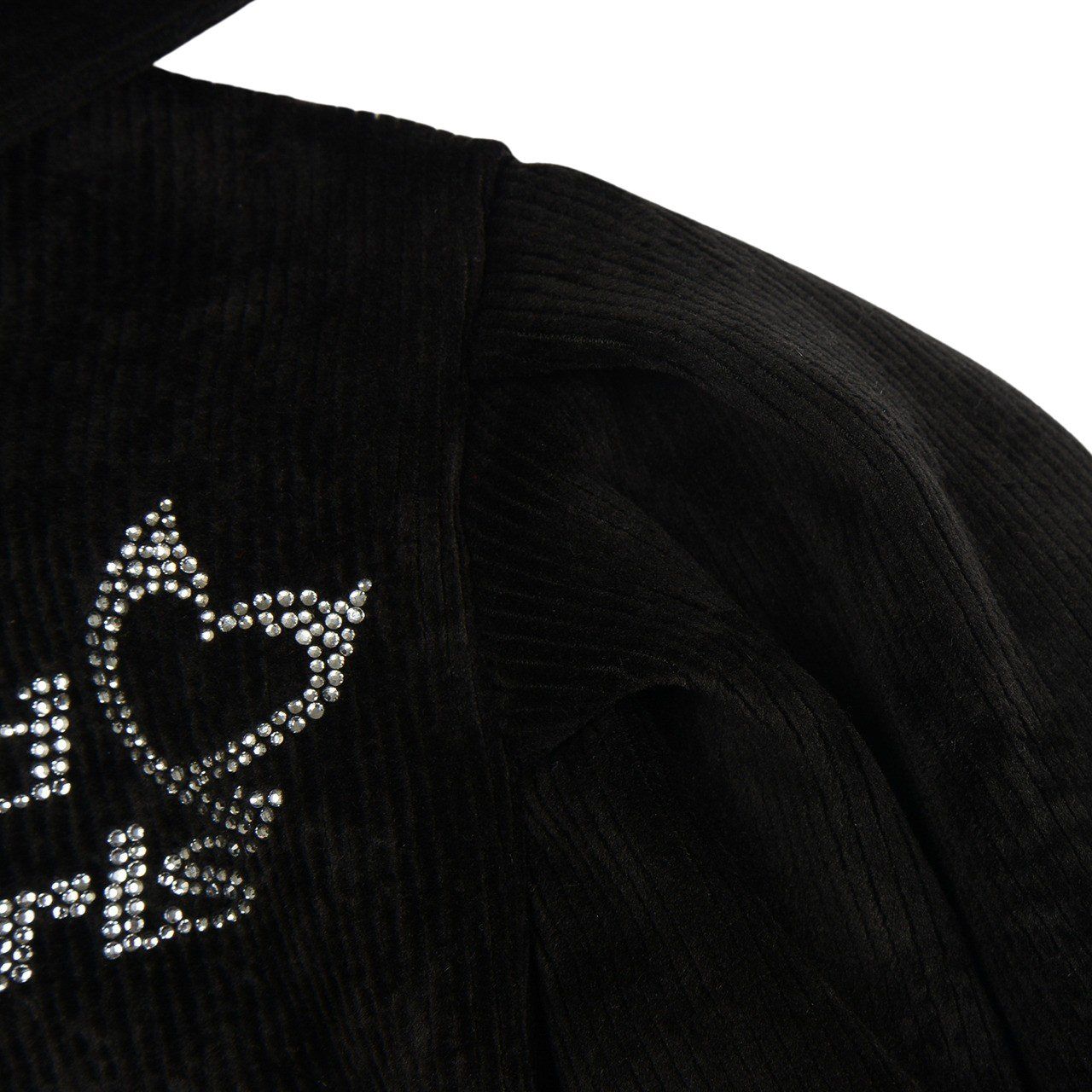 韓國 FORK CHIPS - 燙鑽點綴燈芯絨連帽拉鏈上衣/外套-黑