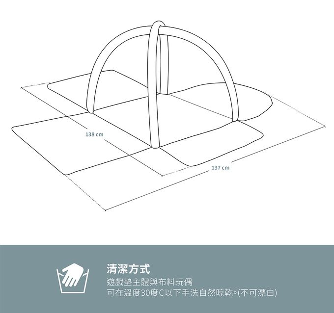 注意事項:本產品必須由成人組裝。 請詳細閱讀說明書,確認正確的使用方法後使用。 請在成人的監督下使用本產品。 本產品應放在平坦處使用,且不得靠近明火或其他熱源處(火爐、電 爐等)。 內含小物件,應避免幼兒吞食窒息。 軟墊和所有配件不可放置在嬰兒床或嬰兒遊戲床中使用。 每次使用前請進行檢查,如有損壞或磨損時,請勿繼續使用。 為避免造成兒童窒息危險,請於拆封後立即將塑膠袋予以銷毀或遠 離兒童。