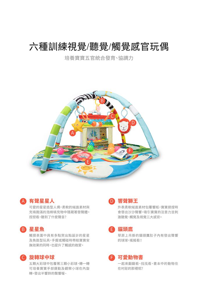 多彩的感官互動玩偶 / 促進寶寶感官發育 / 寬廣遊戲空間 / 超柔軟鋪棉底墊