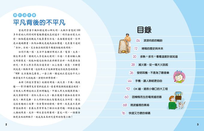 使用條碼借書、購物快速又方便,你知道條碼是哪個聰明人發明的嗎?耳機剛發明的時候不是用來聽音樂,猜猜看,那是用來做什麼的呢?就像每個人有自己的身世,日常生活使用的每樣東西,也都有自己的故事。本書將帶你穿越時空,看看輪胎、遙控器、滅火器等科技百寶箱裡的小祕密。