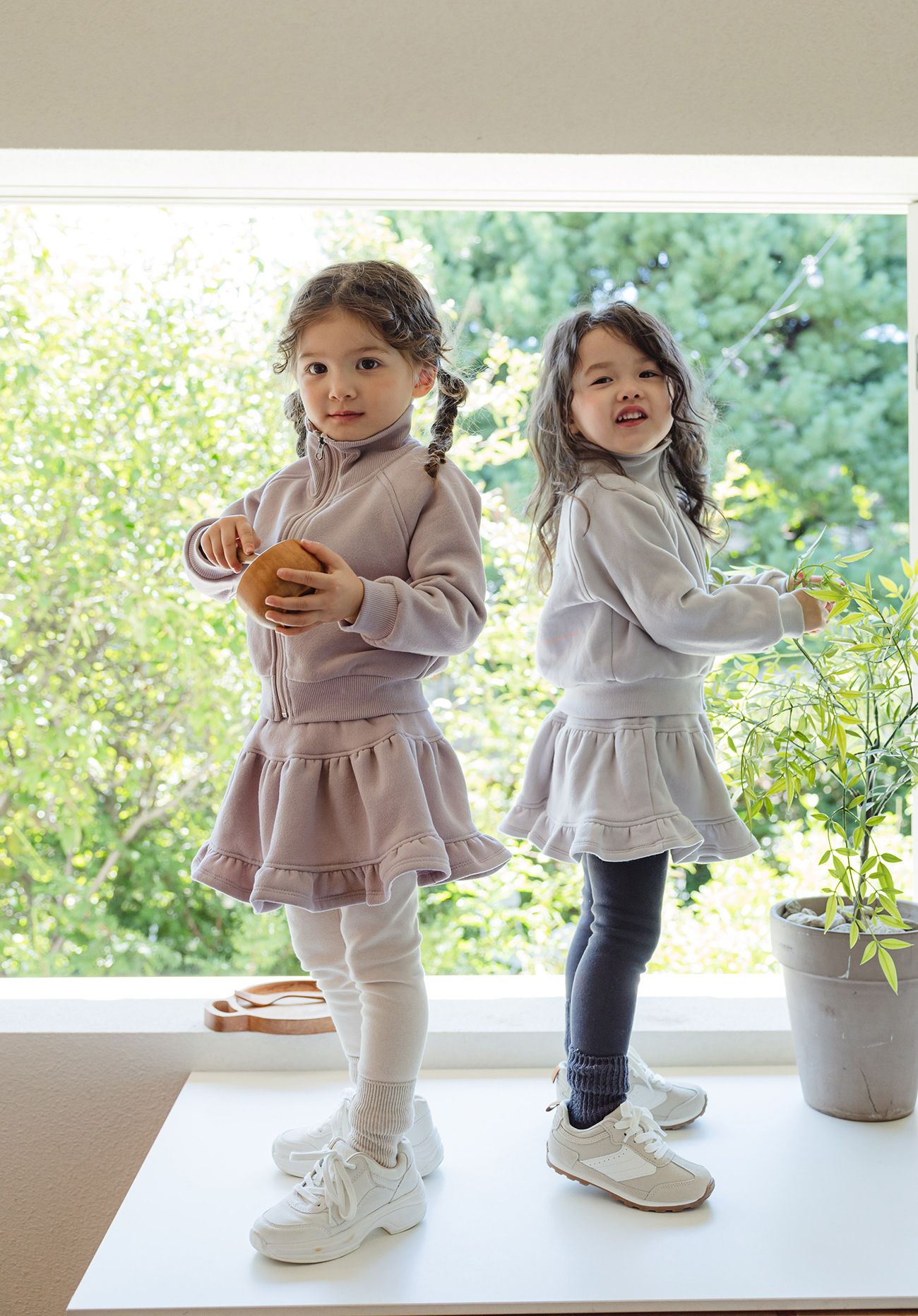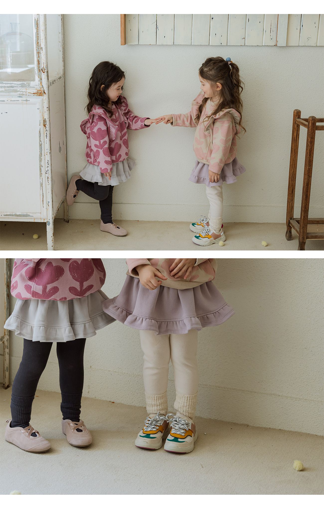 韓國 Puellaflo - 鬆緊腰冬日磨毛荷葉裙內搭褲-淡藕粉X米