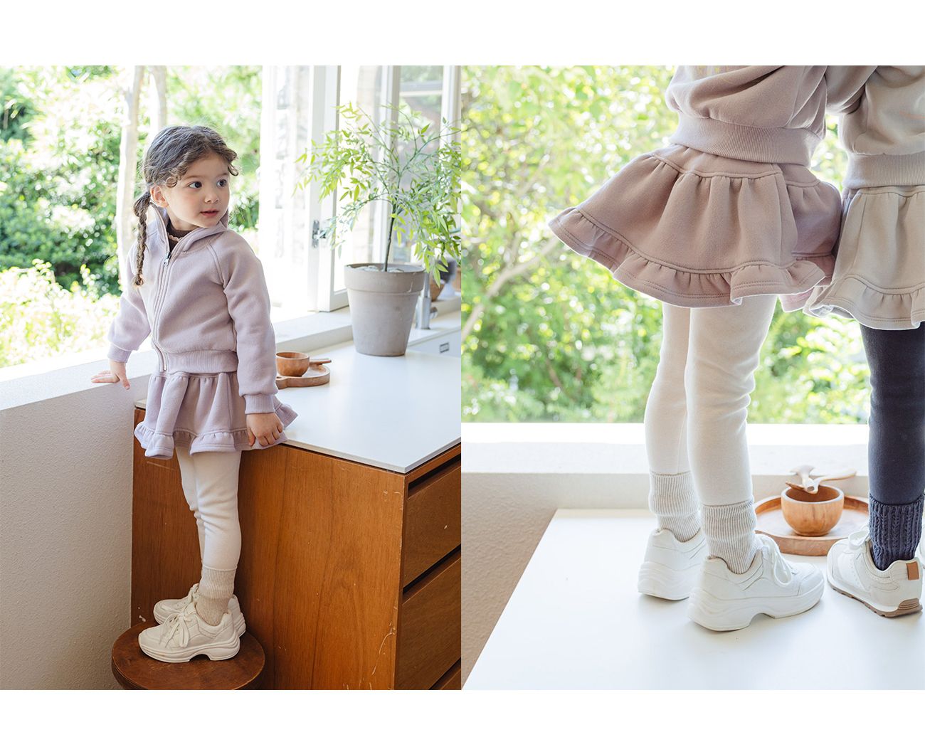 韓國 PuellaFLO - 鬆緊腰冬日磨毛荷葉裙內搭褲-淡藕粉X米